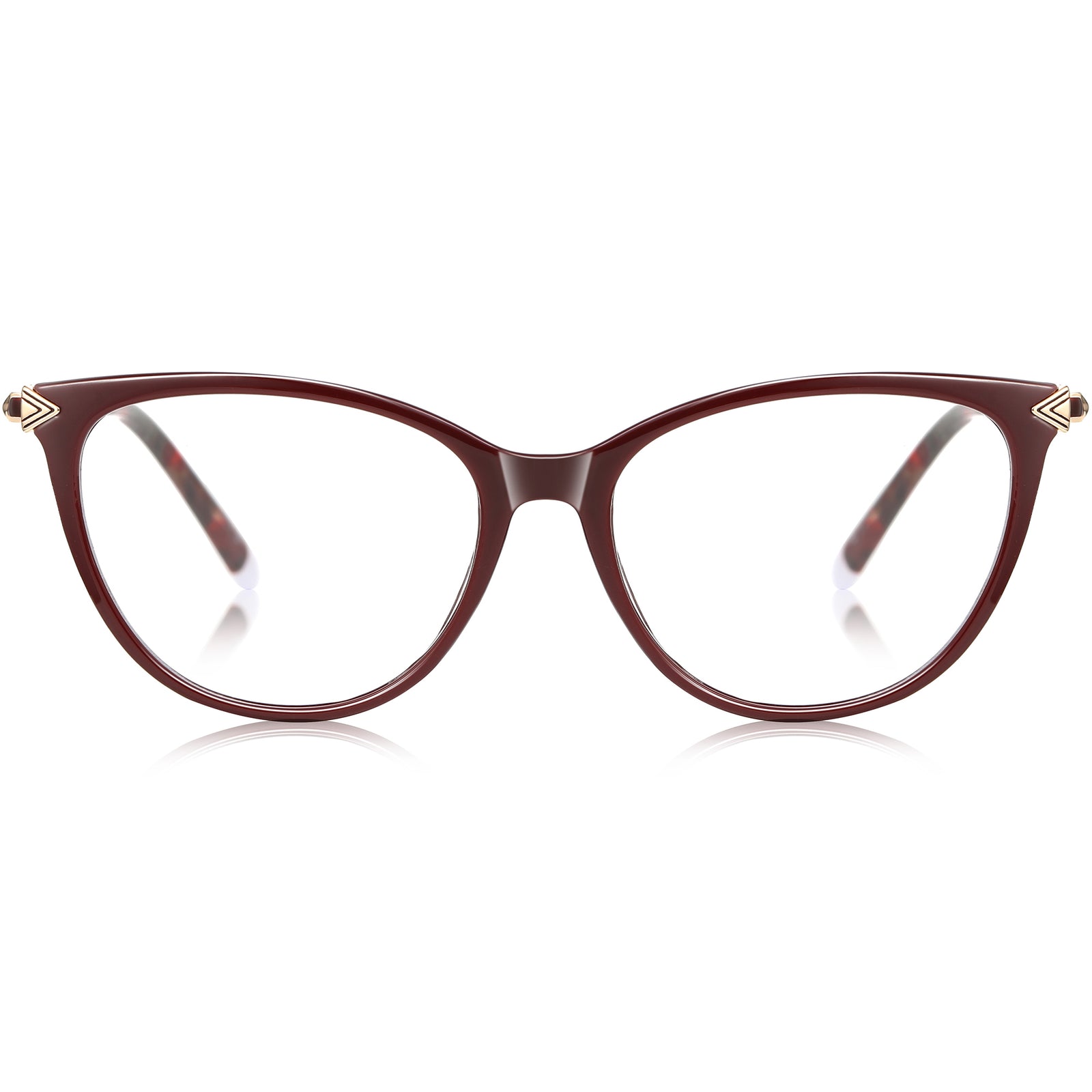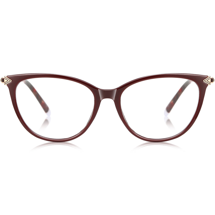 These bold cat-eye eyeglass frames feature a sharp geometric silhouette with sculpted edges for a modern twist on a vintage favorite. Made from lightweight TR90 material, they provide durability and all-day comfort with comfortable spring hinges while maintaining a chic look. The wide temples enhance stability and add a statement touch. Available in classic black, tortoise, and transparent crystal, plus eye-catching gradient shades of red, purple, and teal-pink. Perfect for fashion-forward wearers who want standout eyewear that flatters round, oval, and heart-shaped faces.