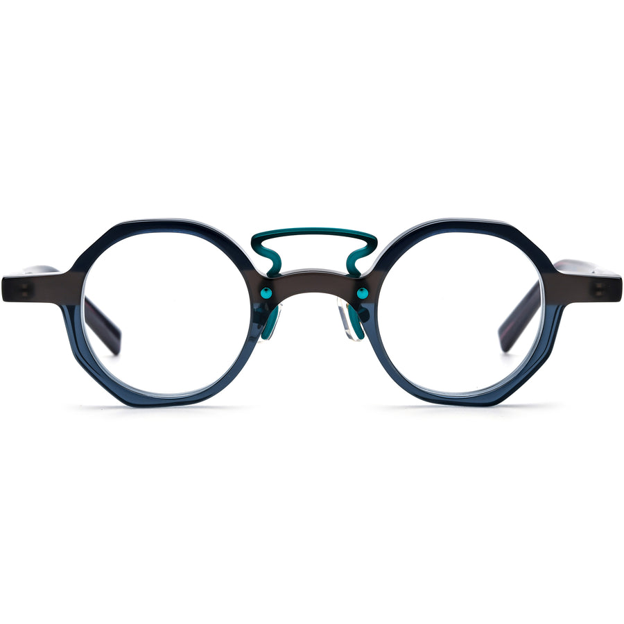 These eyeglasses feature a distinct round frame crafted from lightweight acetate, ensuring durability and all-day comfort. The unique double-bridge design adds a stylish twist while providing additional structural support. Adjustable nose pads guarantee a custom fit, reducing pressure and enhancing comfort for prolonged wear. Perfect for those seeking a bold, vintage-inspired look, this frame complements square, oval, and heart-shaped faces. Ideal for prescription lenses or as a statement accessory for modern, fashion-forward individuals.