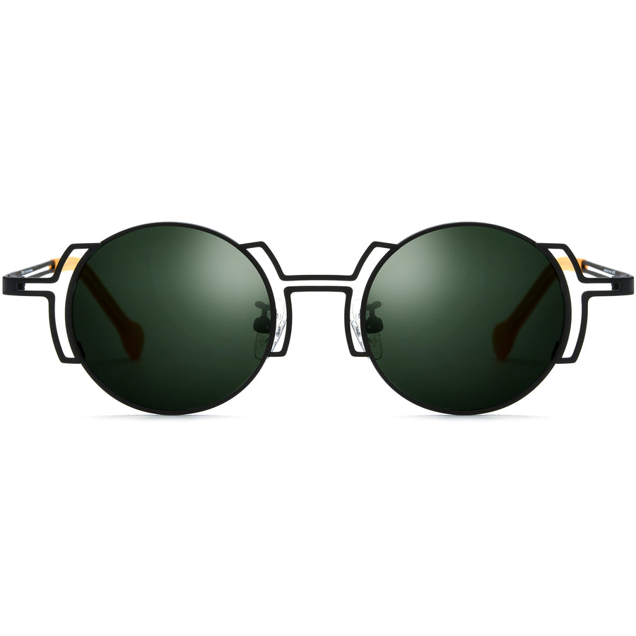 Elevate your style with these contemporary round sunglasses, featuring a unique geometric cut-out frame design crafted from premium titanium for a lightweight yet durable finish. The polarized lenses offer superior UV protection, reducing glare and ensuring visual clarity. Adjustable nose pads provide a customized, comfortable fit, while the vibrant dual-tone temple tips add a pop of personality. Perfect for trendsetters seeking a blend of modern sophistication and practical functionality. A bold accessory for every season!