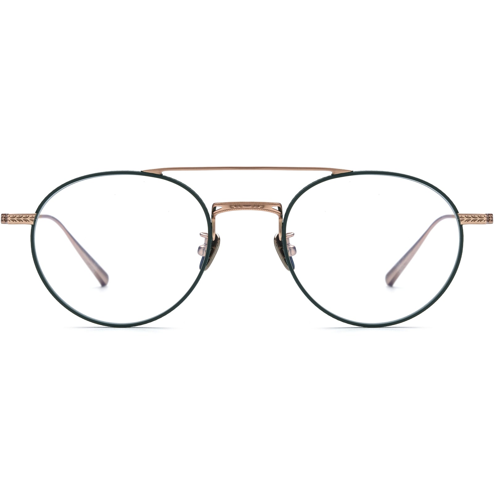 This full-rim titanium aviator frame exudes vintage-inspired charm with a modern twist. Featuring a rounded lens shape and delicately engraved details at both the front rim and temples, this eyewear showcases sophistication at every angle. The intricately cut-out bridge design adds a unique element, while the super light and slim metal construction provides unmatched comfort. Equipped with titanium nose pads for enhanced comfort, this frame is ideal for heart and oval face shapes seeking both style and functionality.