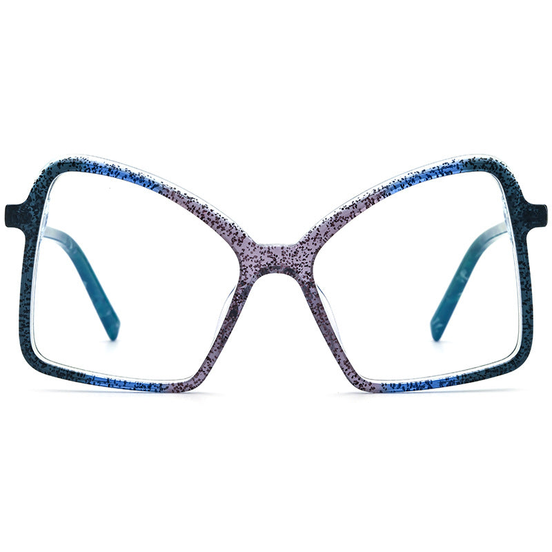 These glittery women's full-rim glasses feature a bold, eye-catching geometric shape that adds a touch of glamour to any look. Crafted from glossy finish acetate, they offer both style and durability, with vibrant, patterned temple arms that bring a playful, unique flair. Lightweight yet resilient, these glasses are designed for comfort, with spring hinges that provide a snug, flexible fit for all-day wear. Available in multi-color, tortoiseshell, champagne, and gray, they’re the perfect accessory to make a statement while ensuring lasting comfort.