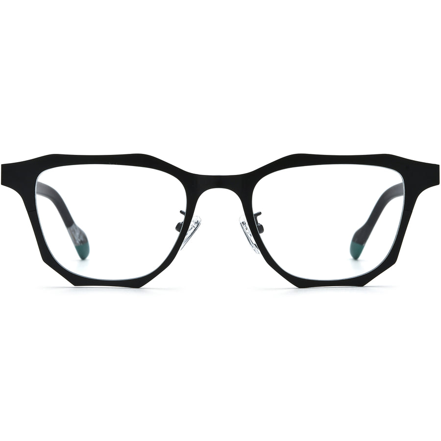 Elevate your everyday look with these bold geometric eyeglass frames, crafted from lightweight titanium for lasting durability and comfort. The striking angular shape offers a modern twist on classic square frames, while the vibrant color options—ranging from sleek black to playful green, purple, and tortoise blends—add personality to any style. Adjustable nose pads ensure a secure, customized fit, and flexible temples enhance all-day wearability. Perfect for fashion-forward individuals, these frames complement oval, round, and heart-shaped faces effortlessly.