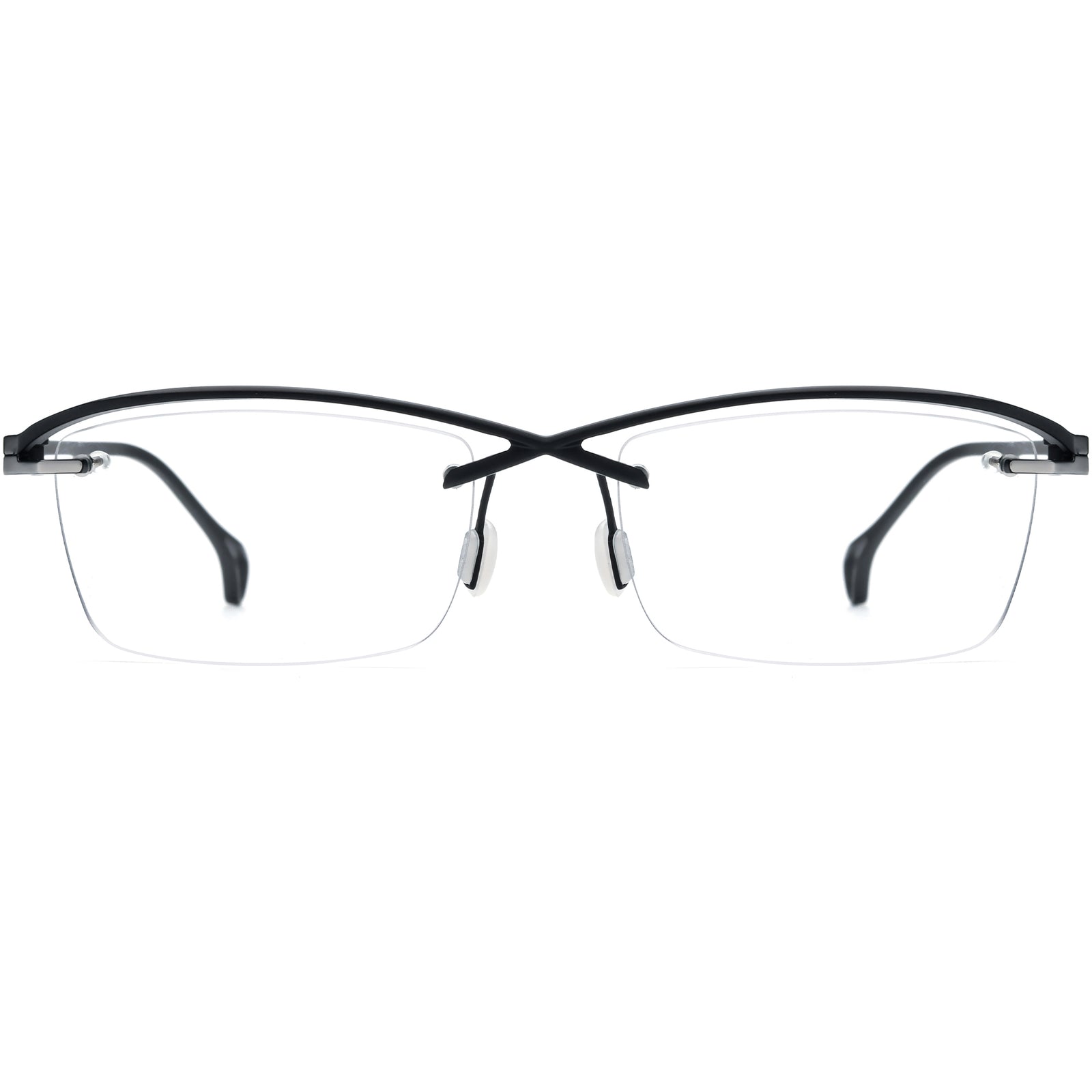 Discover a touch of modern elegance with our unique half-rim eyeglasses. Meticulously crafted from lightweight titanium, these frames boast a rimless structure design, seamlessly combining durability with a sleek aesthetic. The rectangle shape lends a classic appeal, while the innovative construction ensures a one-of-a-kind wear experience. Elevate your eyewear collection with these distinctive and sophisticated glasses.