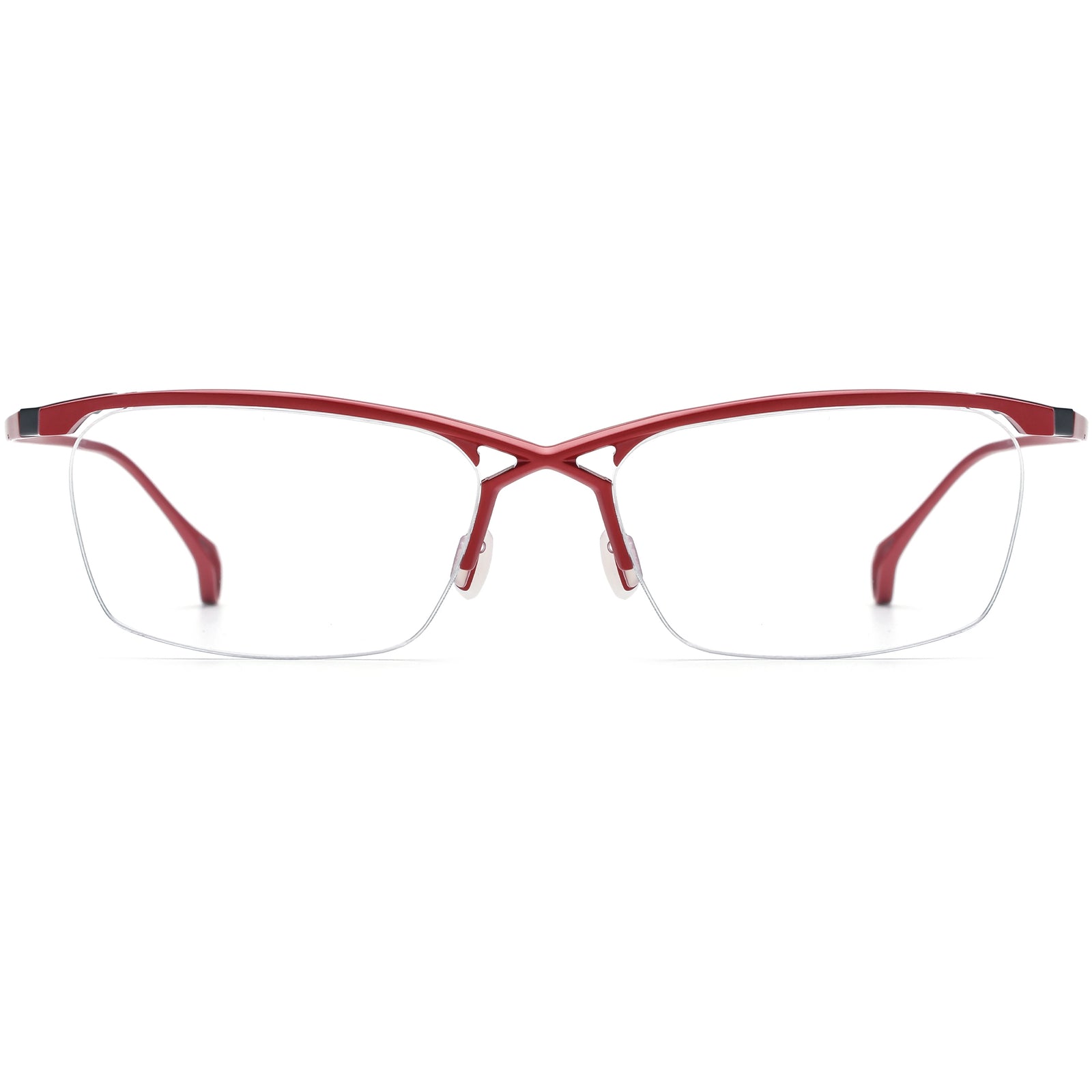 Indulge in unparalleled style with our high-quality titanium eyeglasses, featuring a unique half-rim design and innovative X-shaped structure. The rectangle lenses provide a classic look, while the distinctive frame ensures you stand out in any crowd. Crafted meticulously for durability and comfort, these one-of-a-kind glasses are a testament to exceptional craftsmanship and avant-garde fashion. Elevate your eyewear collection today!
