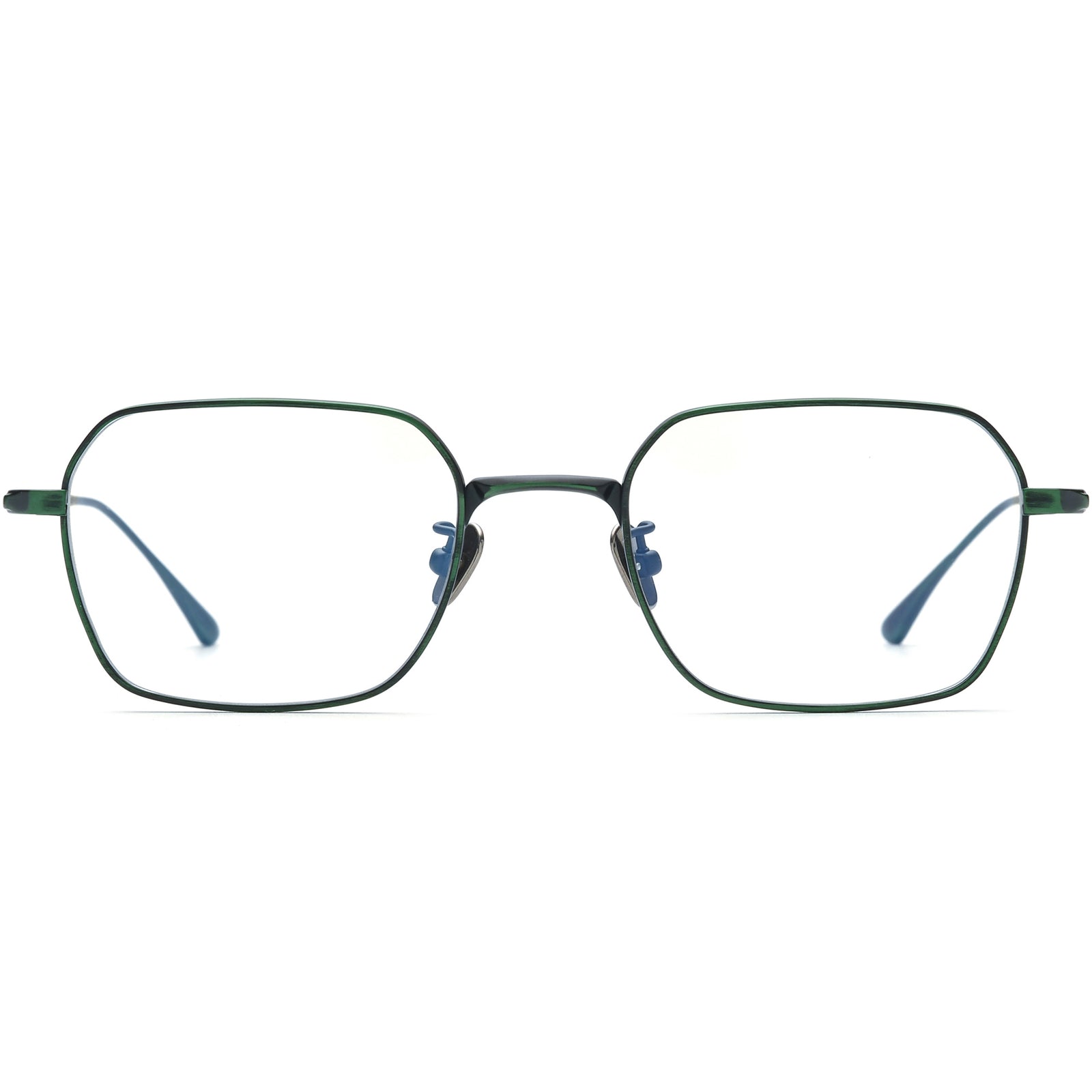 These titanium rectangular eyeglasses feature a unique hexagonal lens shape, offering a retro-inspired design with modern appeal. The full-rim construction is paired with slim, lightweight titanium rims and temple arms, ensuring comfort and durability. The titanium nose pads provide a secure and adjustable fit for extended wear. Perfect for those seeking a stylish and comfortable pair of glasses, these eyeglasses are ideal for everyday use while adding a touch of vintage flair to your look.