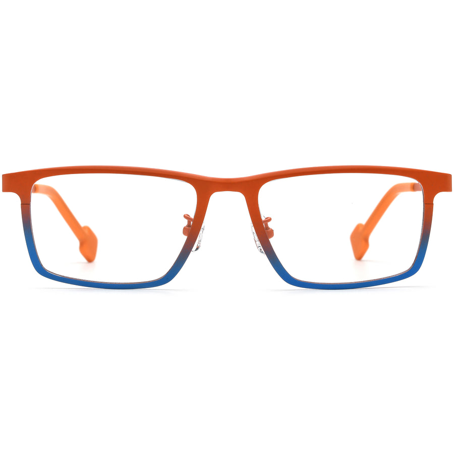 These full-rim rectangle glasses are crafted from premium titanium, offering a super lightweight design for all-day comfort. The dual-tone gradient frame features a seamless color transition, with the temple arms and tips matching in hue for a cohesive look. Adjustable nose pads ensure a secure, customizable fit, while the square temple tips add a modern touch. The contrasting bridge colors further enhance the design, making these glasses an ideal choice for round face shapes.