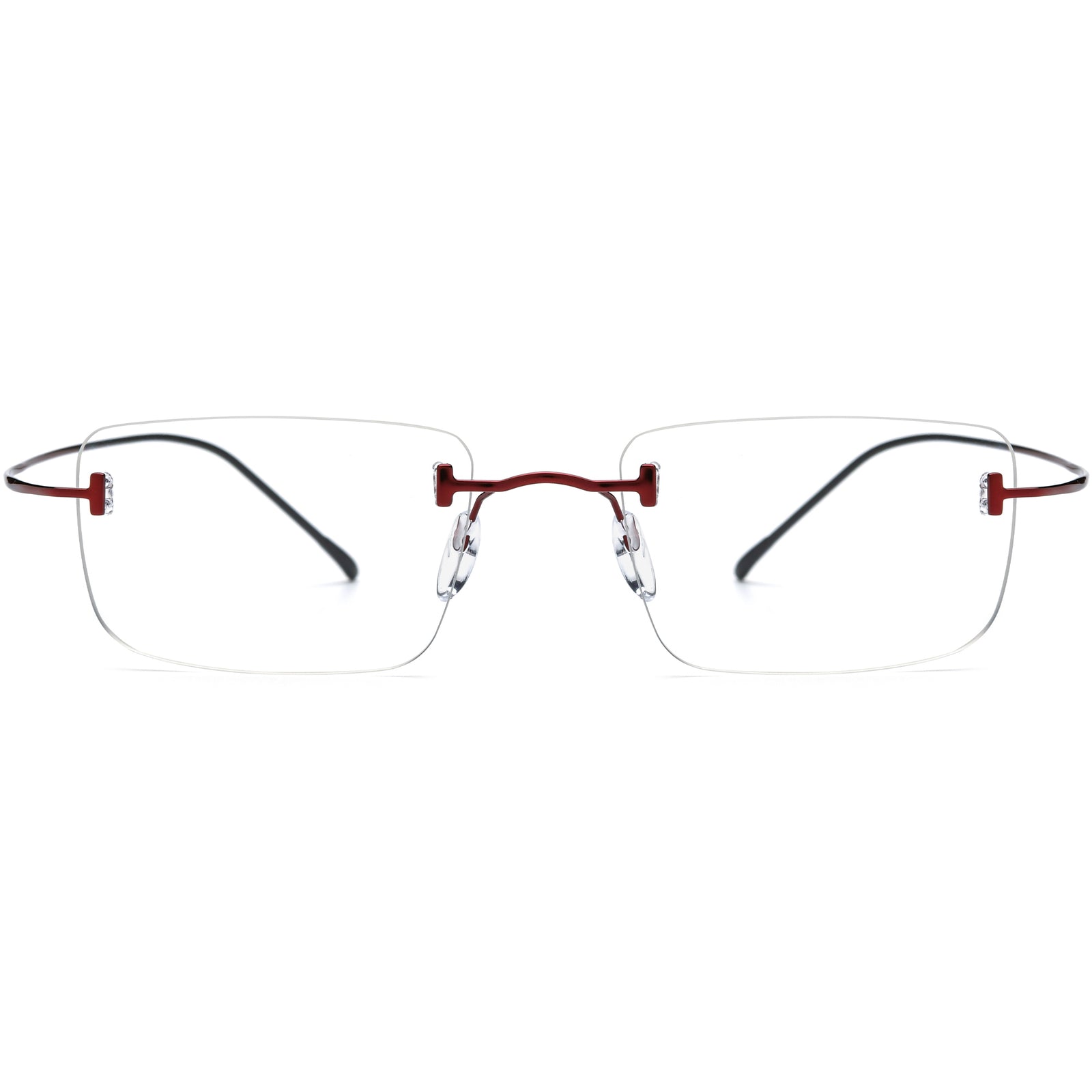 Experience minimalist sophistication with our ultra-light rimless rectangular eyeglass frames, crafted from durable titanium alloy for everyday comfort and strength. The frameless lens design delivers a sleek, barely-there look, while the flexible wire temples add modern character in bold, vibrant color options including red, green, blue, gold, and black. Adjustable silicone nose pads ensure a personalized fit for long wear. Perfect for professionals and style seekers, these glasses flatter oval, round, and heart-shaped faces with effortless elegance.