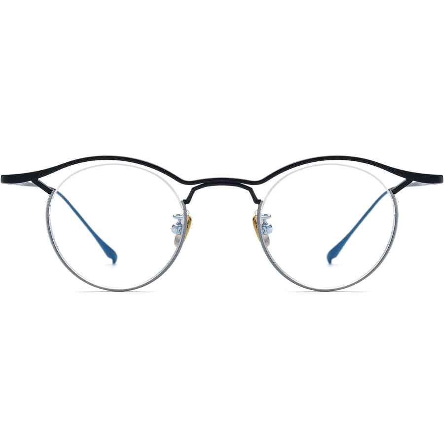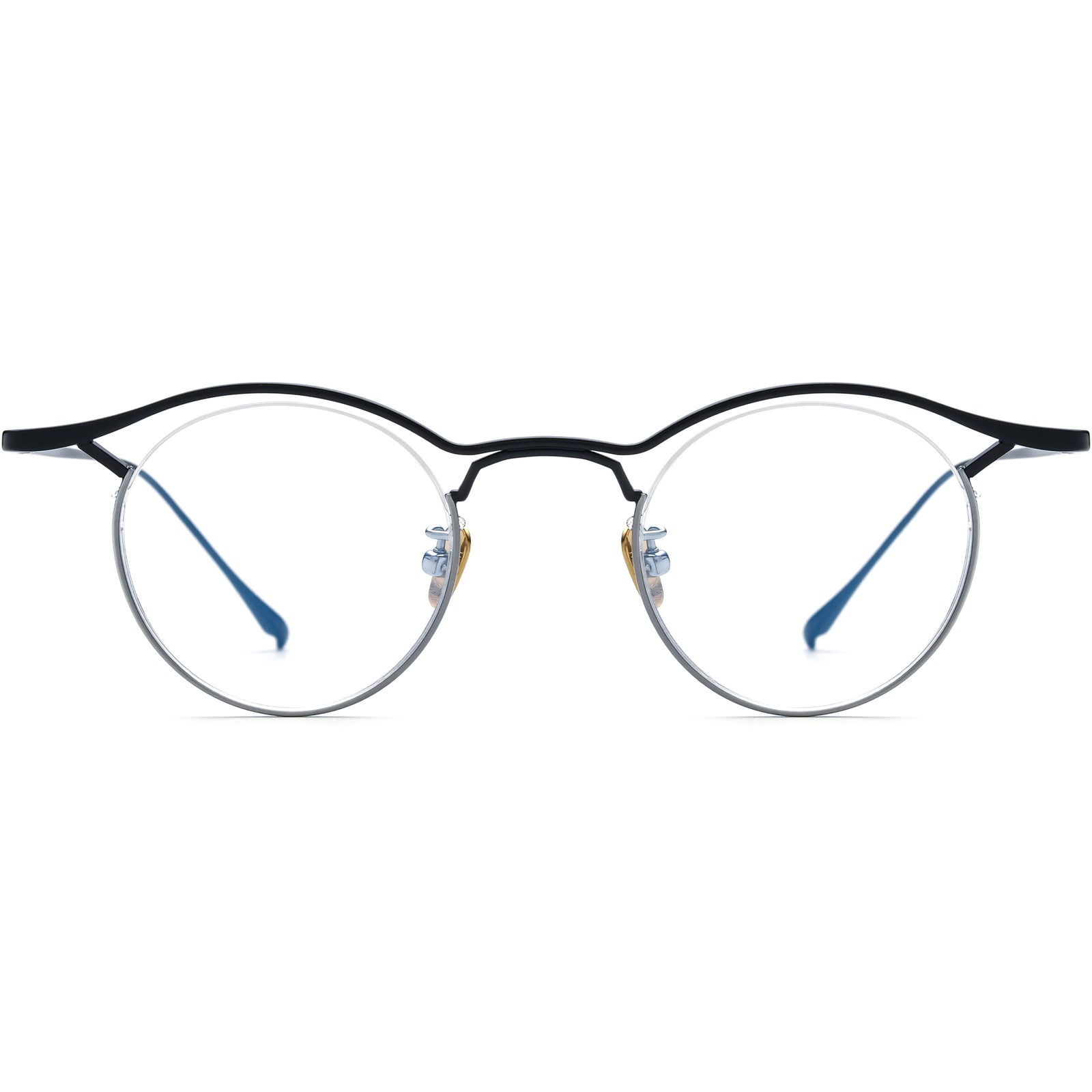 This striking eyewear features a floating lens design, where the lenses appear to "float" within the frame, creating a sleek, minimalist look. It is crafted from lightweight and comfortable titanium. The frame is slightly leaned forward, giving it a contemporary and dynamic appearance, while also enhancing the lens prominence. Equipped with titanium nose pads and slim temple arms, they ensure optimal comfort and a secure fit for extended wear, perfect for those with square or diamond face shapes. They are available in classic color options like black silver, green, brown, gray, gold and black.