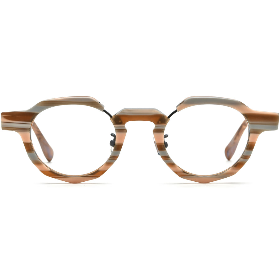 Add a fun twist to your style with these acetate round-frame glasses, available in a variety of vibrant color combinations. Featuring playful, multicolored designs that range from earthy browns to vivid blues, greens, and reds, these glasses offer a bold look for every personality. Crafted with unique layering and color-block details, they bring an artistic edge to a classic silhouette. Lightweight and comfortable, they are perfect for daily wear with adjustable nose pads, adding a pop of color to your outfit while ensuring a stylish and confident look.