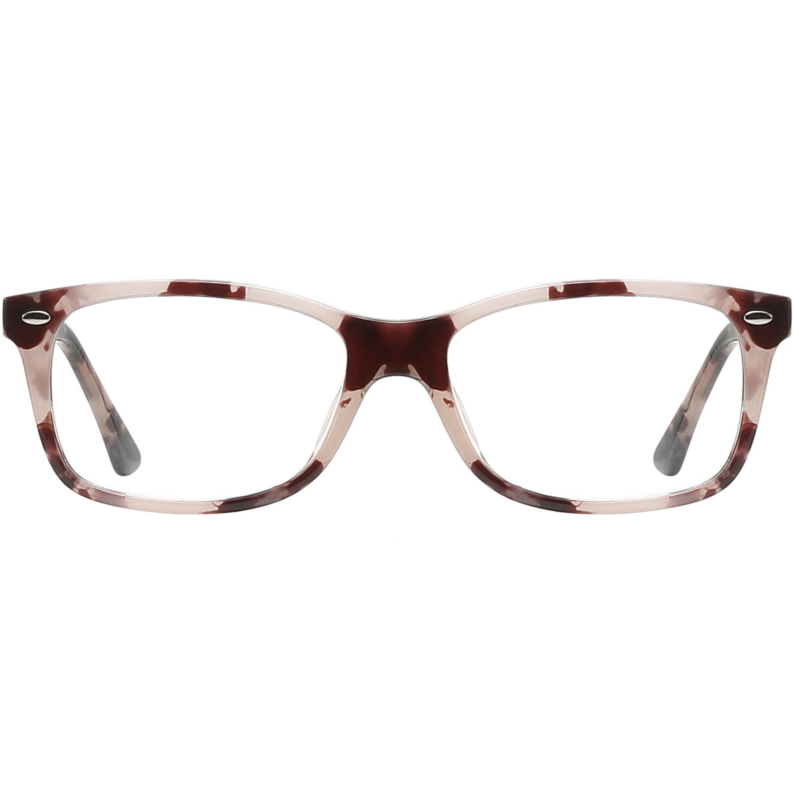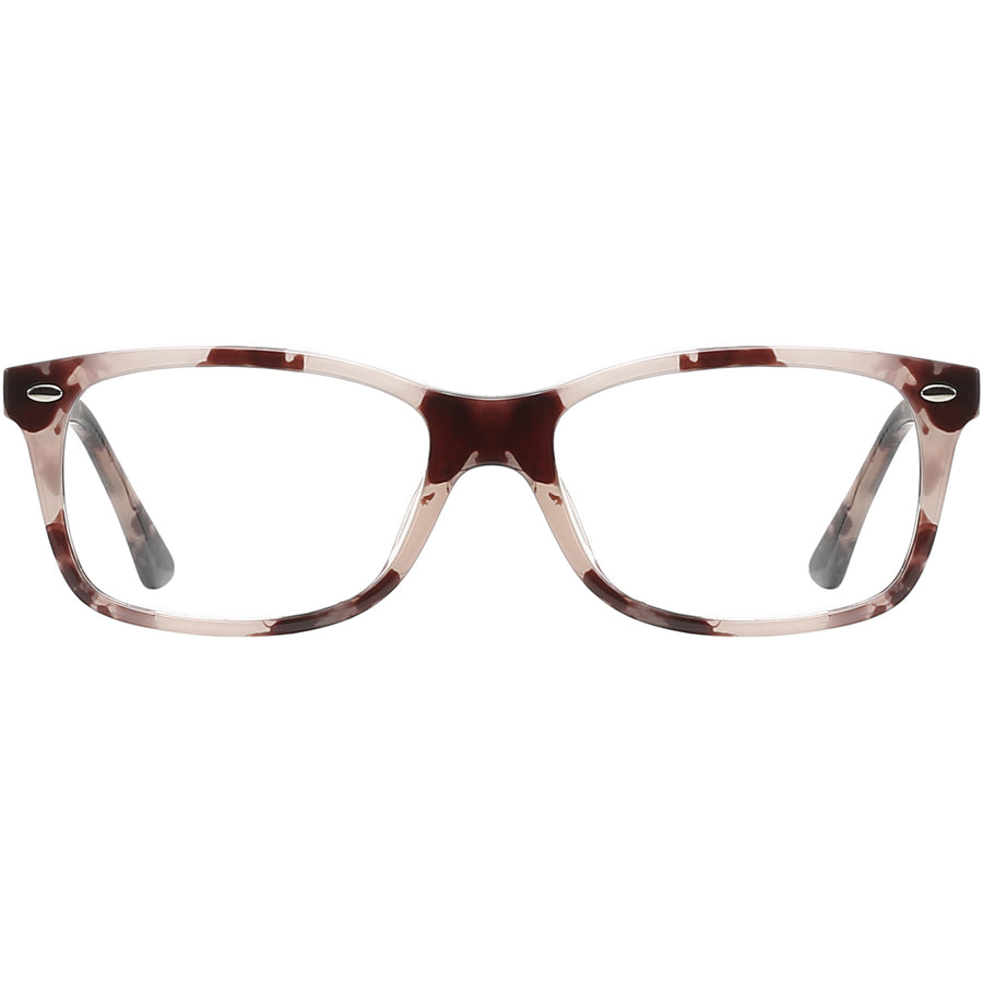 Lightweight TR90 sculpts this full-rim rectangular frame, balancing classic lines with a softly curved brow for relaxed, unisex appeal. Diamond-cut rivets and a confortable bridge lend vintage notes, while translucent crystal and marble-fleck colorways add modern character. Hidden spring hinges let the temples flex for pinch-free comfort, and textured metal cores boost strength without bulk—perfect for long hours at the monitor, reading or daily errands. The moderate lens width flatters oval, round and heart faces alike.