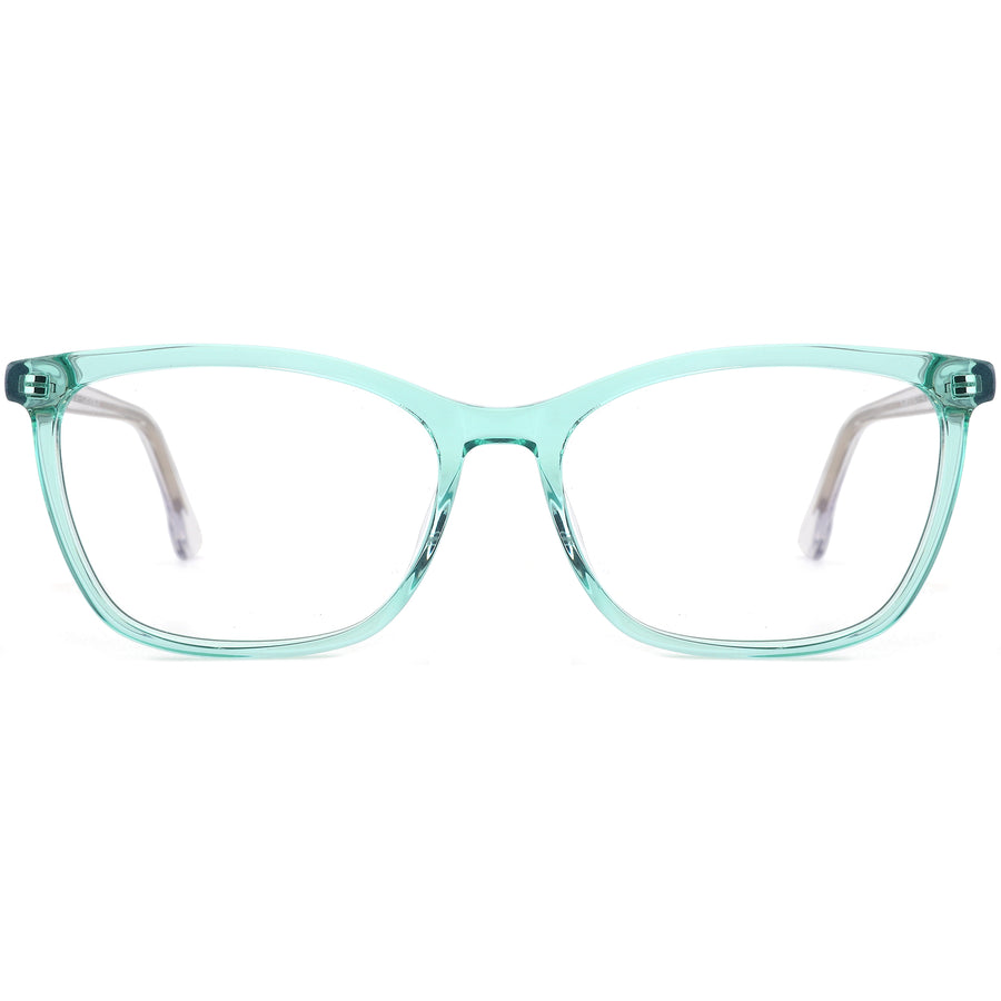 These chic full-rim eyeglass frames feature a soft rectangle silhouette crafted from lightweight, translucent acetate for a fresh, modern look. The gradient pastel colorways and subtly detailed metal-core temples add a feminine, stylish edge. Spring hinges offer flexibility and a pressure-free fit for all-day comfort, while the frame’s ergonomic curves ensure stability during extended wear. Ideal for square, oval, and heart-shaped faces, these frames are perfect for everyday optical use or as fashionable blue light glasses.