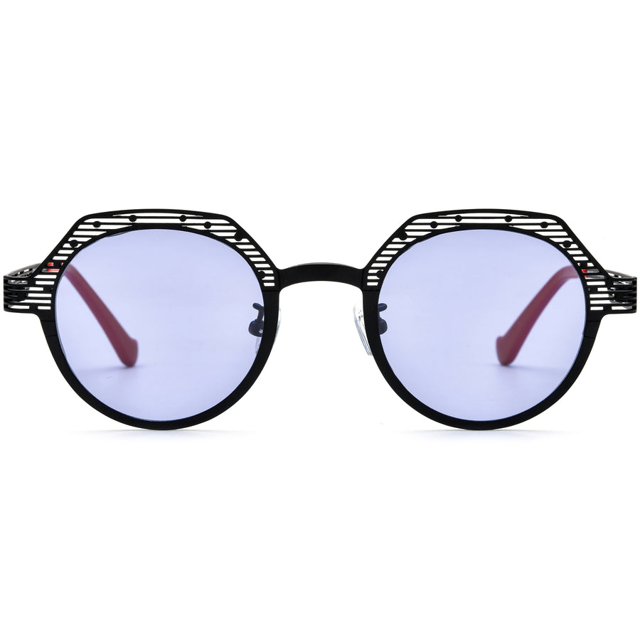 These striking titanium sunglasses feature round frames with a futuristic, laser-cut lattice design, offering a bold architectural aesthetic. Designed for both fashion and function, the lightweight titanium ensures durability and long-lasting comfort. The unique pattern adds an artistic flair, while adjustable nose pads provide a custom fit. Perfect for oval, square, or heart-shaped faces, these sunglasses exude modern elegance and are ideal for anyone looking to make a bold statement. Effortlessly combine style and practicality with this head-turning eyewear!