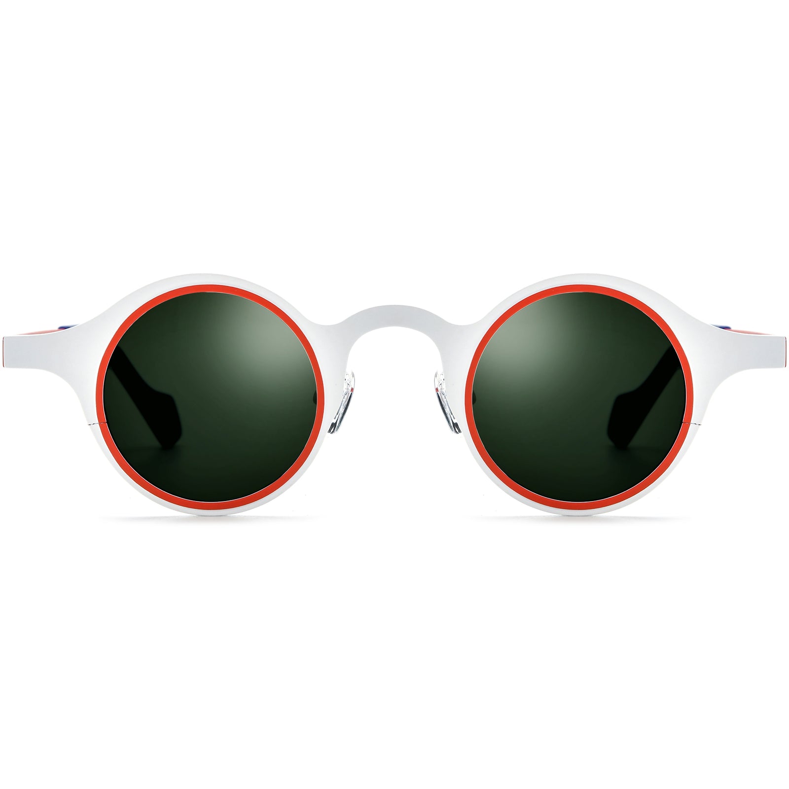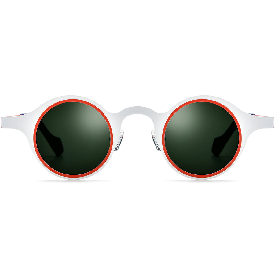 These round-frame sunglasses combine vibrant color contrasts with high-quality materials for a statement look. Made from durable, lightweight titanium, they feature a dual-tone design that enhances visual appeal. The round frames are universally flattering, ideal for oval, square, or heart-shaped faces. The adjustable nose pads ensure all-day comfort, while the polarized lenses reduce glare, offering crystal-clear vision for outdoor adventures. Perfect for fashion-forward individuals, these sunglasses are a blend of artistry and functionality, making them a must-have for any collection.