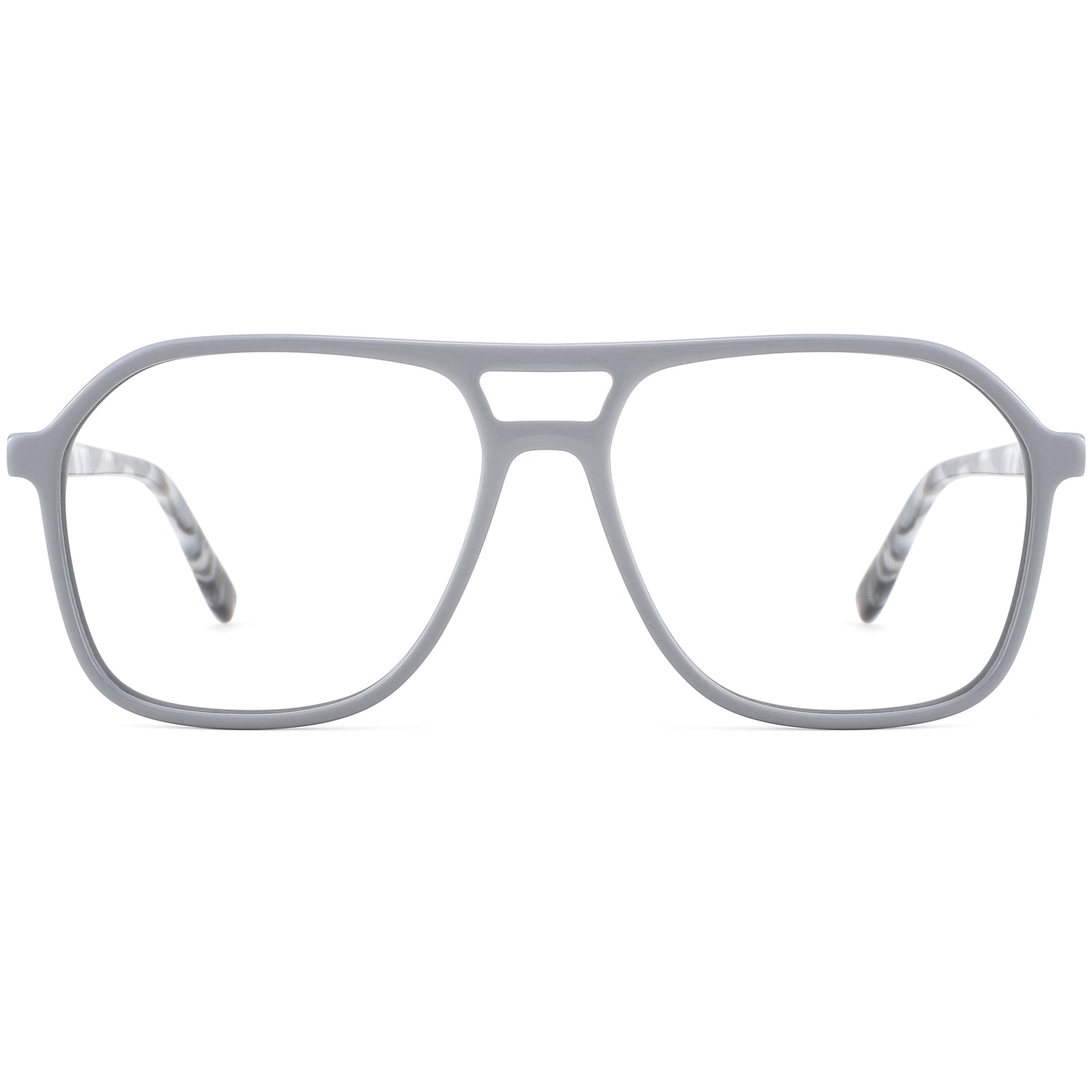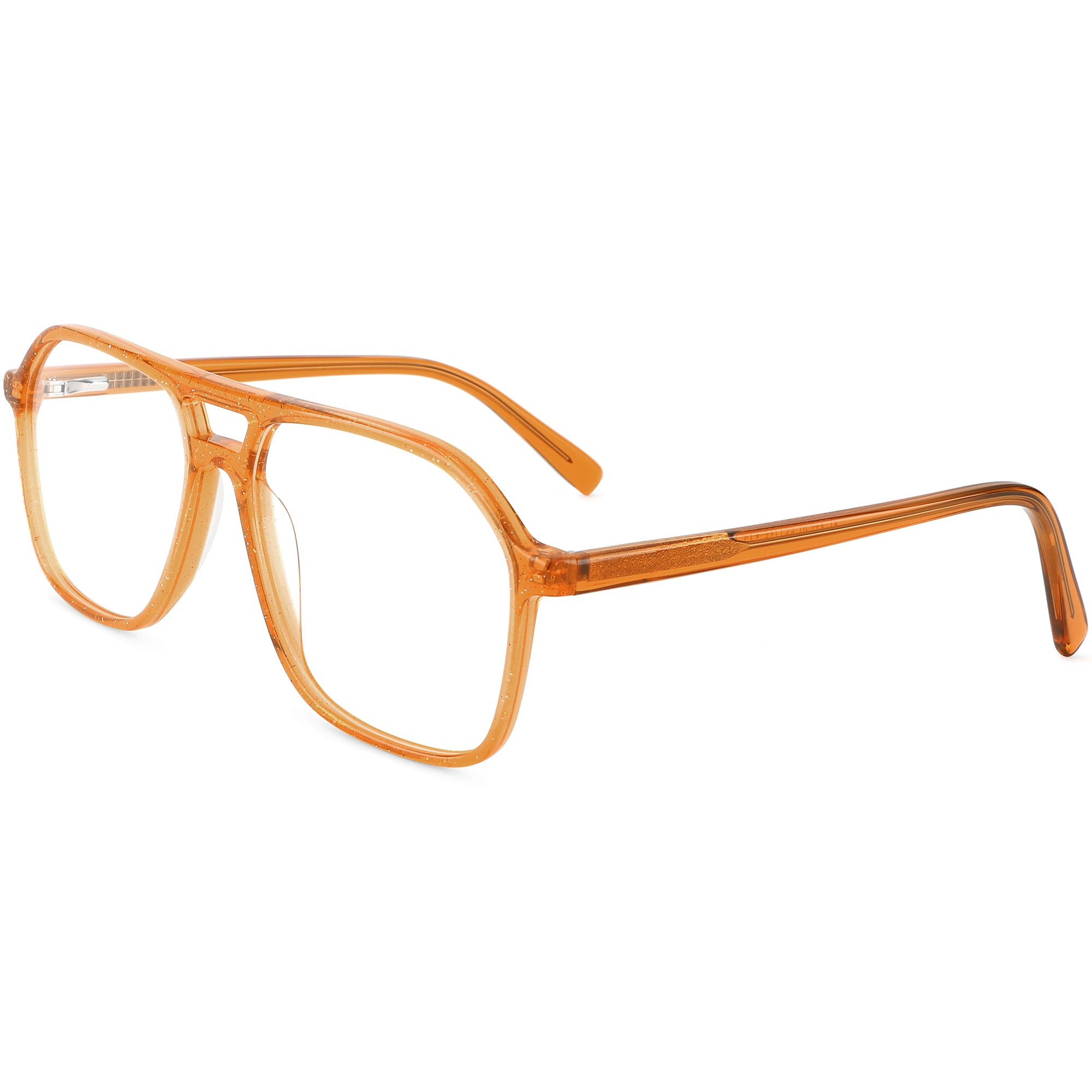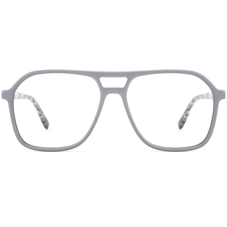 Elevate your eyewear with our minimalist aviator glasses, made from hand-polished full-rim acetate for a luxurious shine. The slender rims and double-bridge design offer a bold yet lightweight look. With spring hinges for added comfort and durability, these glasses come in glittery purple, black and gray with tortoiseshell temple arms. Perfect for a stylish and durable choice.