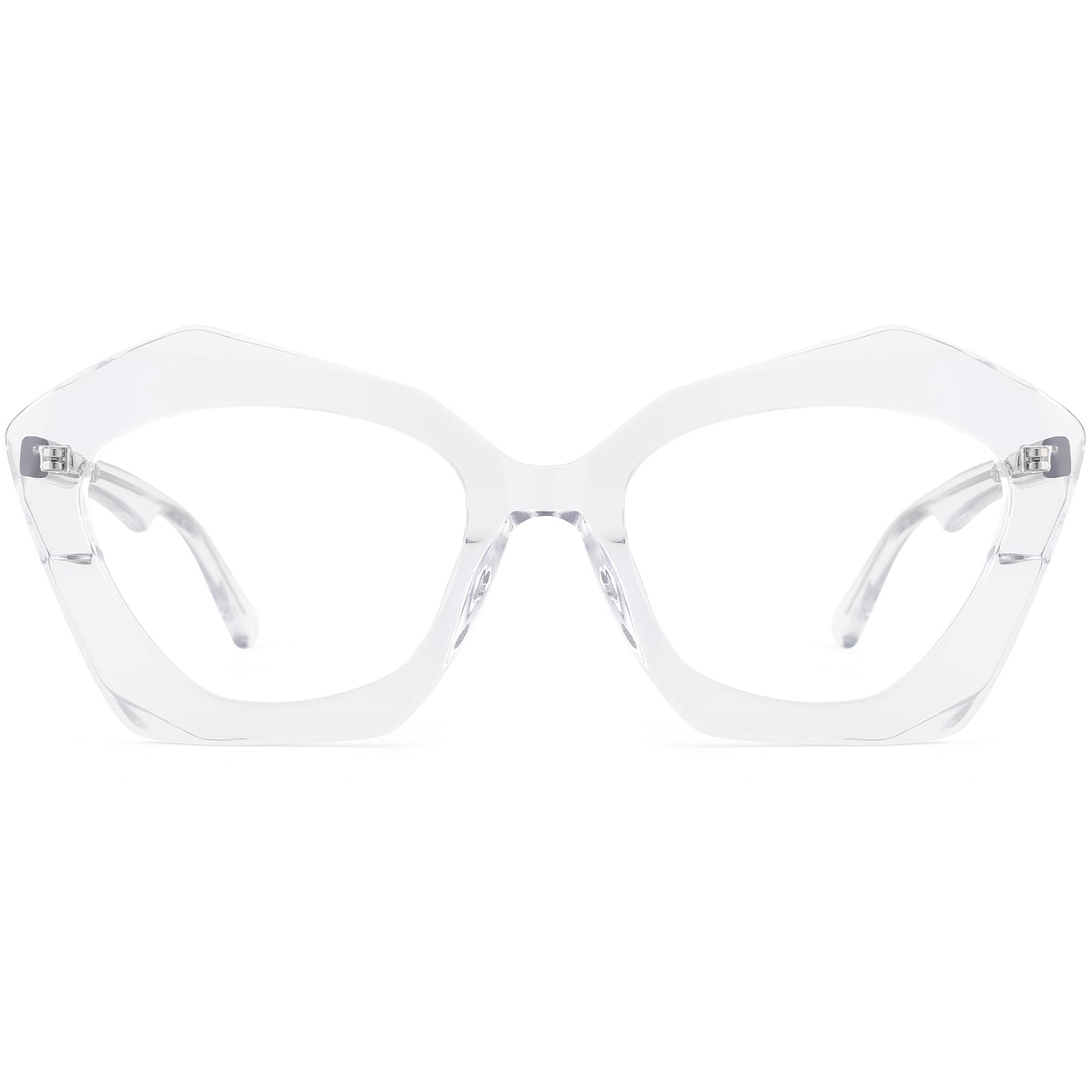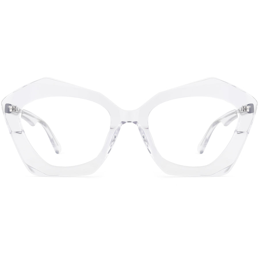 Make a bold statement with our geometric glasses, available in simple color options. Using advanced edging technology, these premium frames are crafted from the highest quality acetate and hand-polished for an amazing shine. The streamlined design elements make them eye-catching as both glasses and stunning sunglasses (try them with fashion-tinted lenses!). For added comfort and durability, the frame is fitted with spring hinges, ensuring all-day wearability and style.