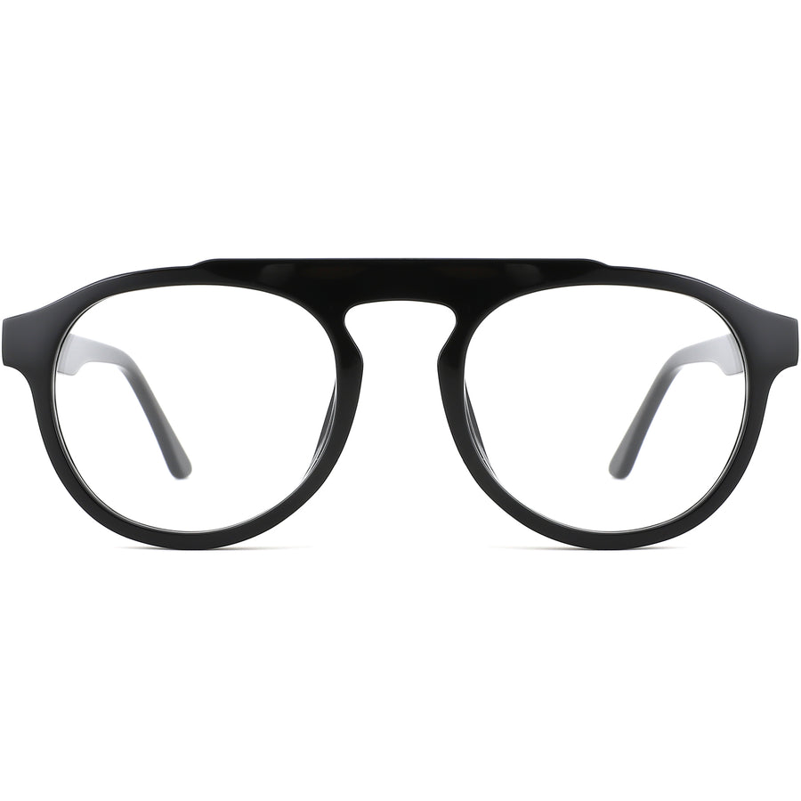 Crafted from premium acetate, these full-rim glasses feature a modern aviator-inspired brow bar with a rounded-lower frame and subtly notched keyhole bridge for balanced comfort. Integrated spring hinges ensure flexible movement and a secure fit, while angular temple detailing adds a sleek, contemporary edge. Lightweight yet sturdy, they’re built for all-day wear—ideal for both professional settings and casual outings. Their versatile silhouette complements oval, square, and heart-shaped faces, delivering reliable comfort and enduring style.