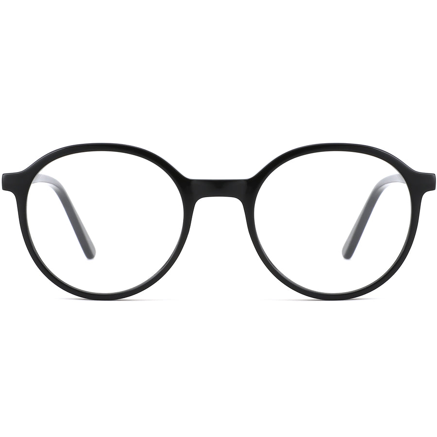 Meet your new everyday essential: these full-rim acetate glasses feature a classic round silhouette softened by a gentle bridge for even weight distribution. Built for comfort, stainless-steel spring hinges adapt to every movement, while glitter-infused temple inlays add a dash of sparkle. Featherlight yet sturdy, they transition effortlessly from desk to dinner. Available in translucent pastels and bold solids, this versatile style flatters square, oval, and heart-shaped faces—delivering all-day wearability with understated elegance.
