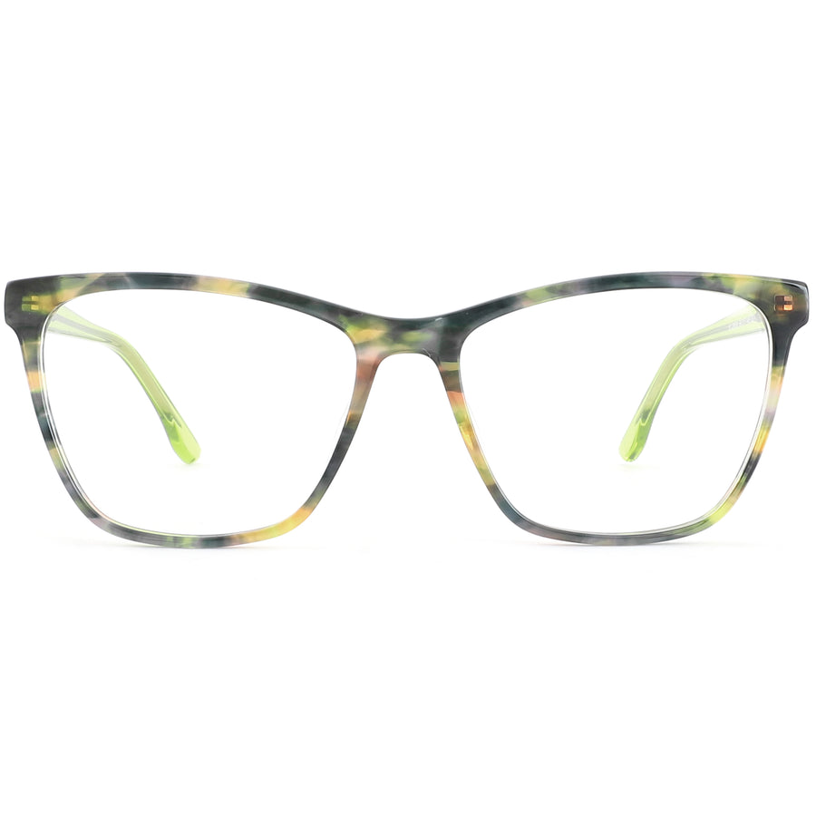 Discover sophistication with our square frames, crafted from lightweight yet durable acetate with a glossy finish. Featuring slim rims and spring hinges for everyday comfort, these frames come in contrasting color options: green with yellow temple arms, transparent with blue temples, and purple with red temple arms. Perfect for a stylish and versatile look.