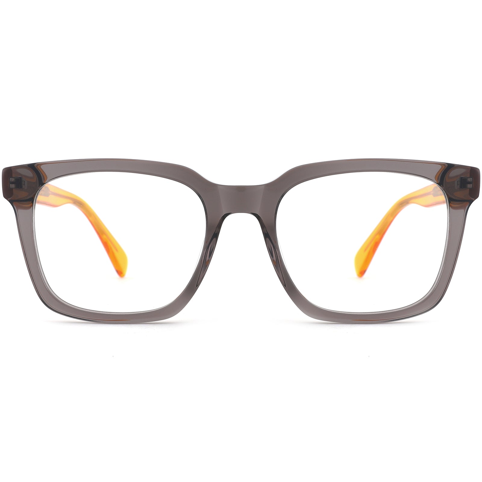 Embrace classic style with our square frames, crafted from solid and clear acetate. Lightweight and durable, these frames feature a glossy finish with translucent gray front rims and green temple arms. Designed for all-day comfort, they include a universal bridge fit and spring hinges. Perfect for a timeless, sophisticated look that suits any occasion.