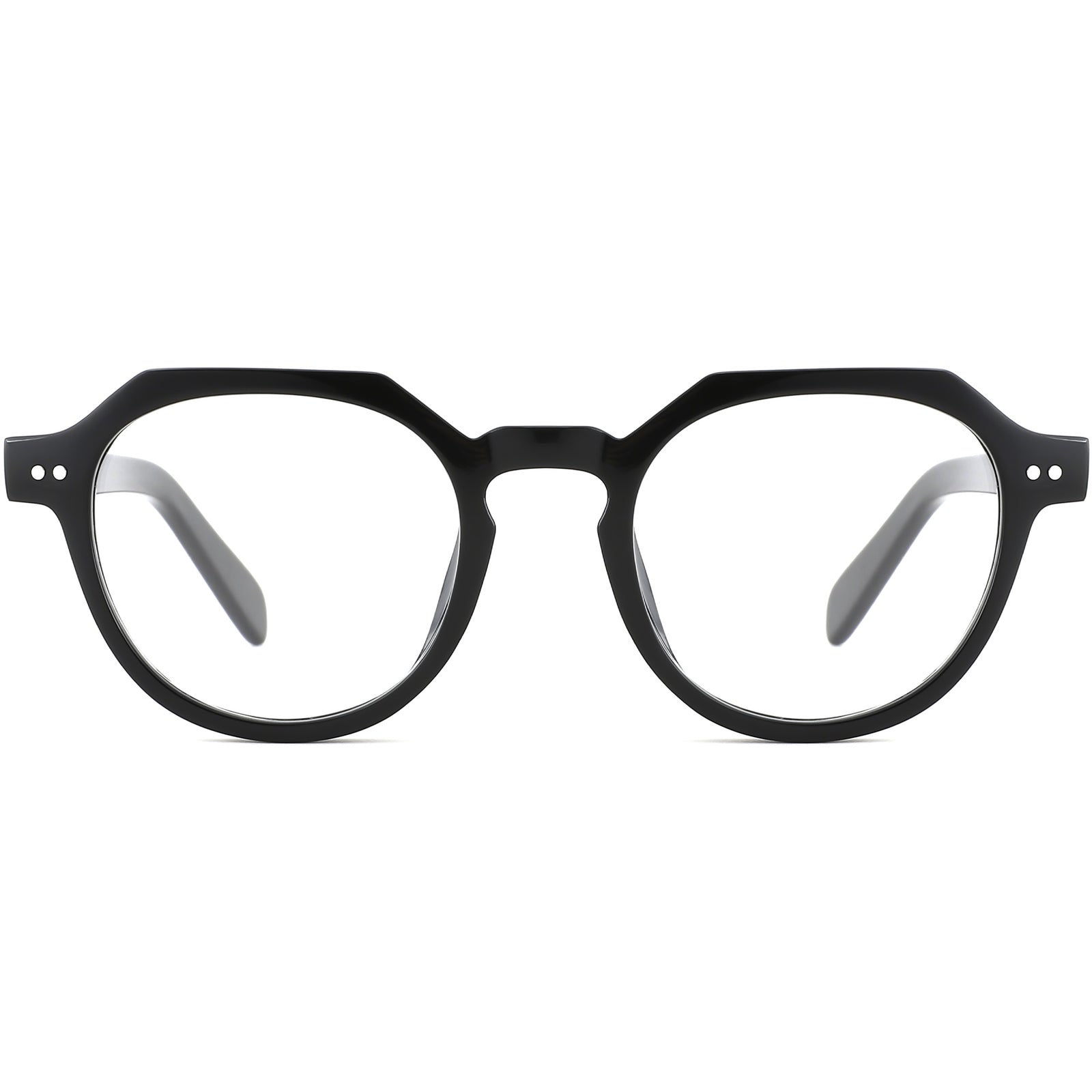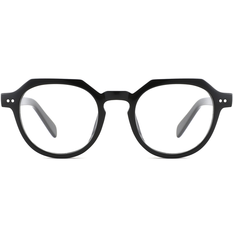 Crafted from premium acetate, these full-rim glasses feature a subtle hexagonal-round frame shape with a comfortable keyhole bridge and discreet spring hinges for flexible movement and extended wear. Polished double-rivet accents and tapered temples add refined design flair, while broad temple arms ensure a snug fit. Lightweight yet durable, they’re perfect for daily use—from office hours to weekend outings—delivering optimal comfort throughout the day. Ideal for oval, square, and heart-shaped faces.