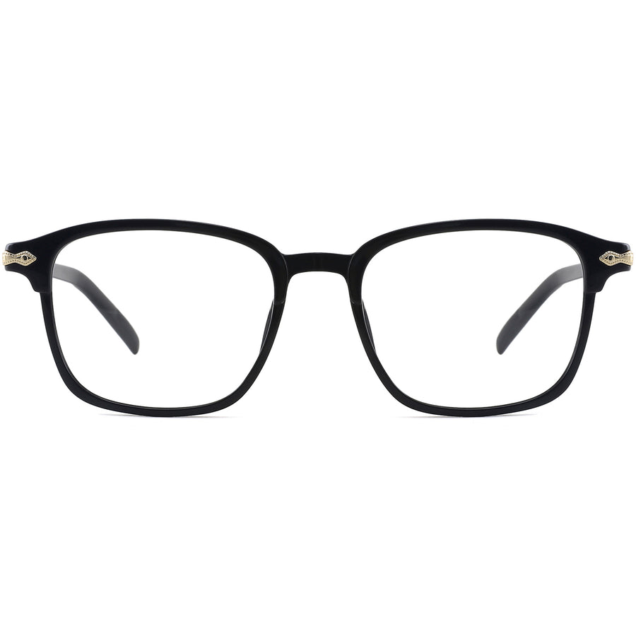 These square glasses feature a full-rim acetate frame with a glossy finish, providing a timeless look suitable for both men and women. The design includes iconic metal details at the hinges, adding a touch of sophistication. Available in black, tortoiseshell, blue and green, they offer a comfortable fit for all-day wear with durable construction. Ideal for oval and heart face shapes.