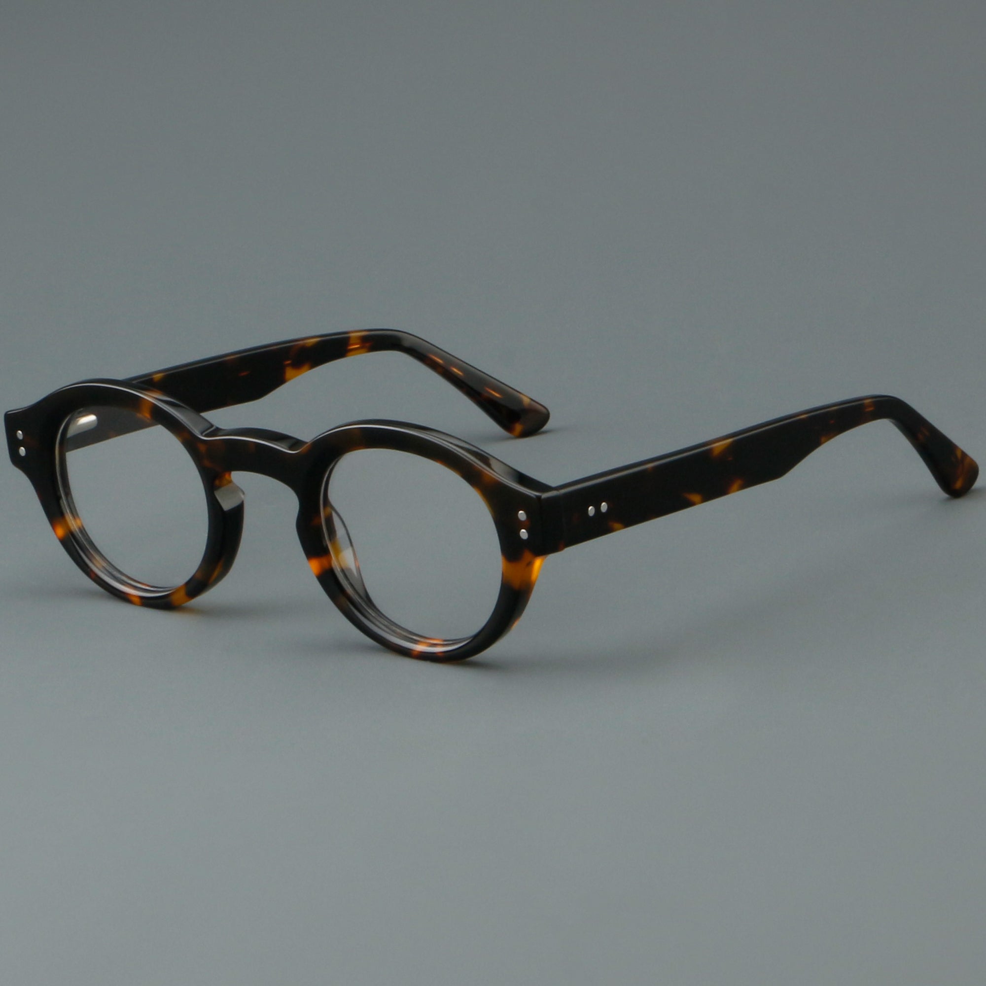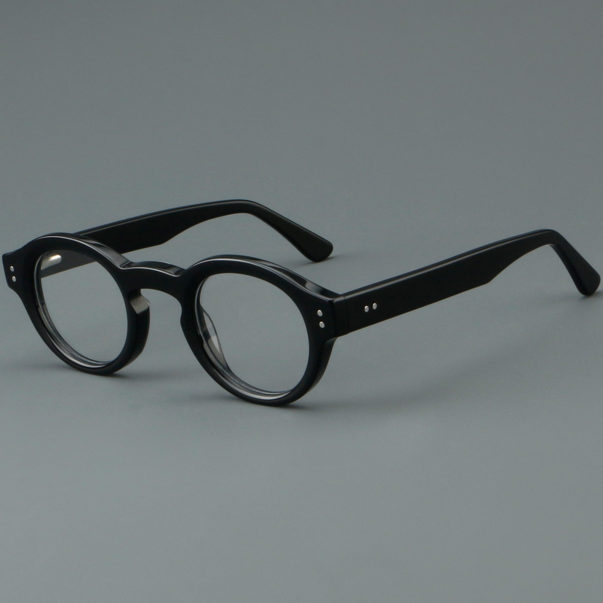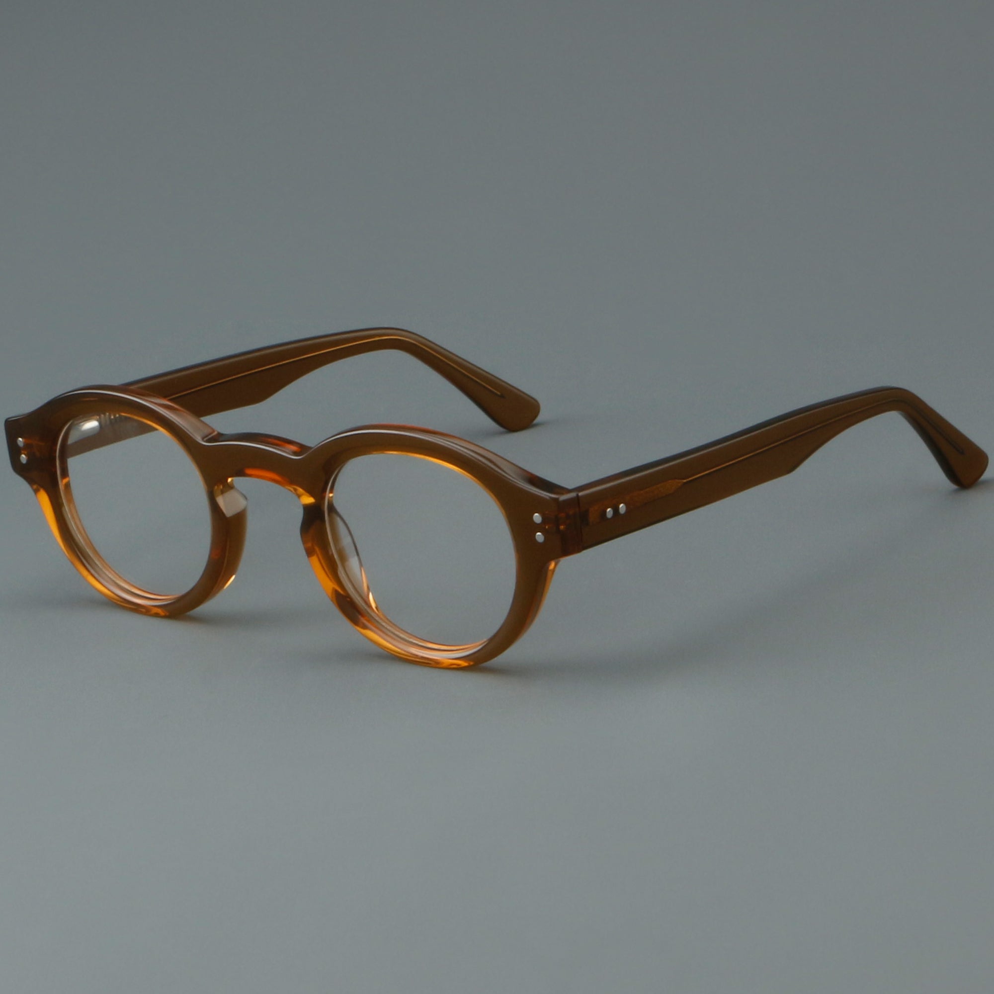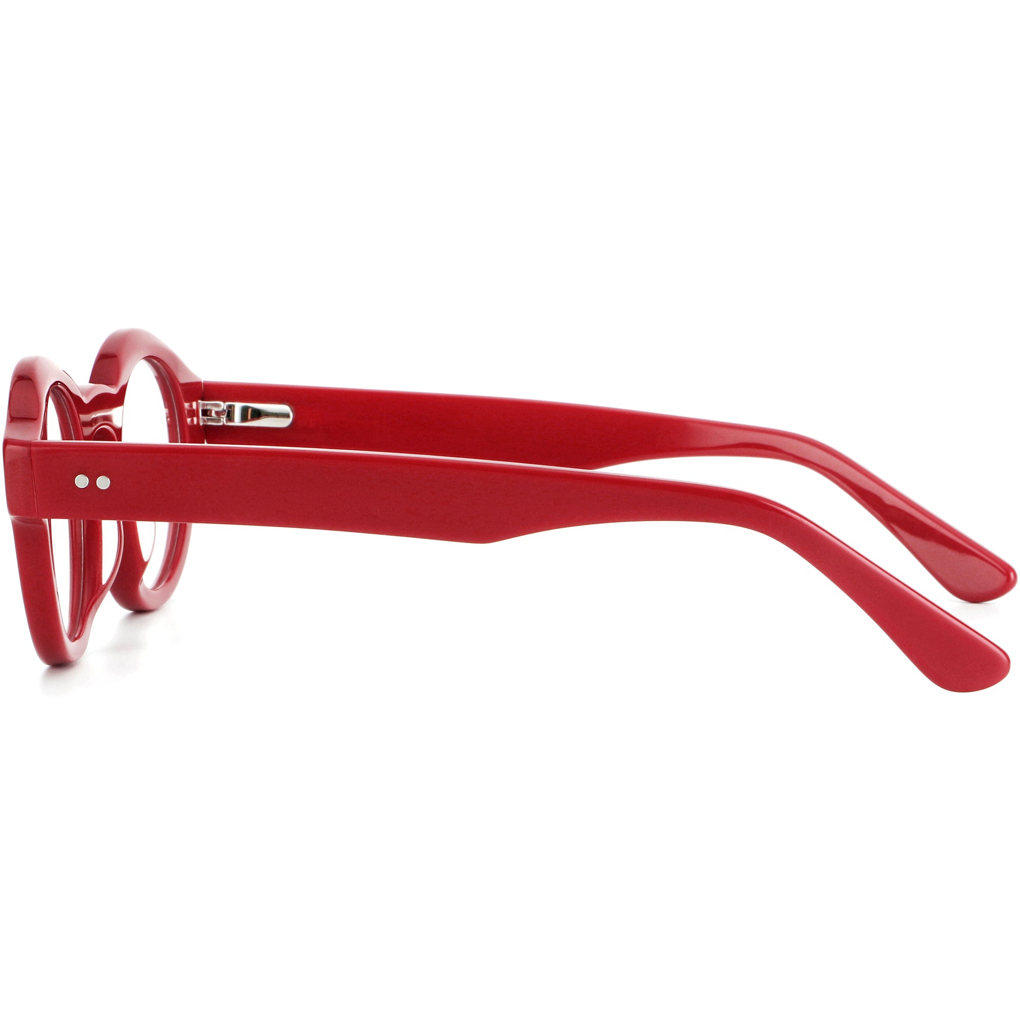 Bold round eyeglasses with keyhole bridge in full-rim acetate. The retro frame suits petite faces and teens. Smooth acetate front and arms, with integrated molded nose pads for all-day comfort. Secure riveted spring hinges add durability and a wider opening. Classic round shape with playful colors makes a statement for men or women. Ideal for optical or blue-light lenses. Shop lightweight, unisex acetate frames—full-rim, round glasses with spring hinges and built-in nose pads.