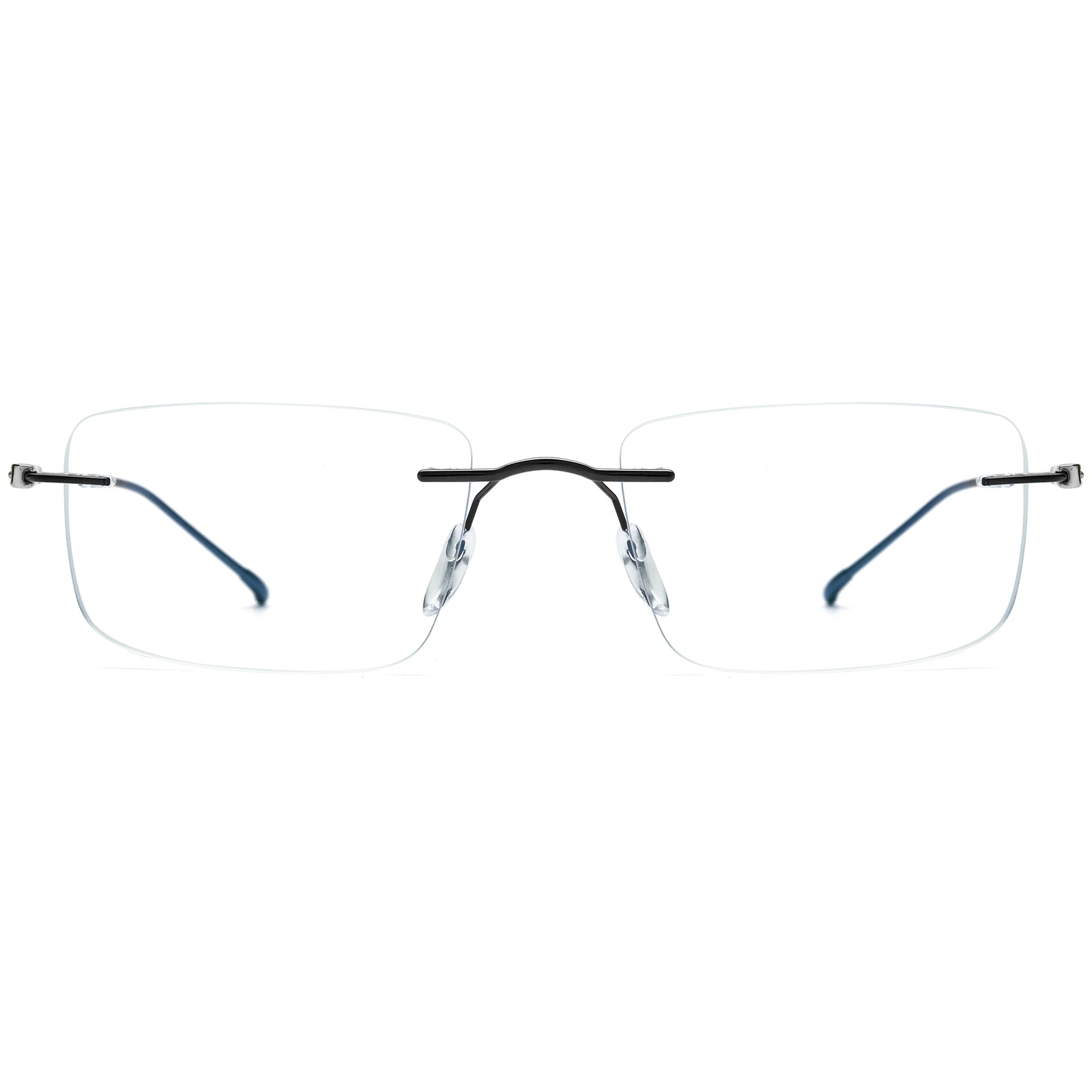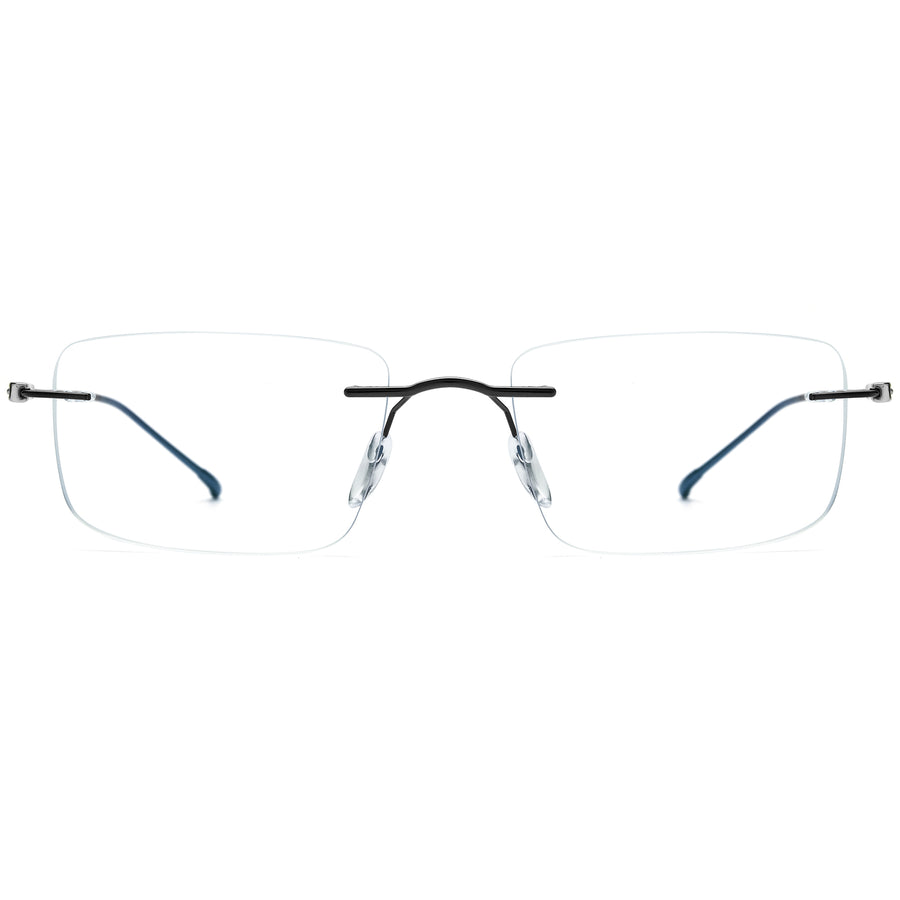 These simple design rectangle glasses feature a rimless construction, offering a sleek and minimalist look. With a medium size, they are designed for comfort with soft silicone nose pads and slim temple arms for a lightweight feel. The unique hinge design adds a touch of modern sophistication while ensuring durability. Ideal for everyday wear, these glasses are available in classic color options like black, blue, gray, and silver. Perfect for balancing round face shapes, they provide a refined, versatile style that suits any occasion.