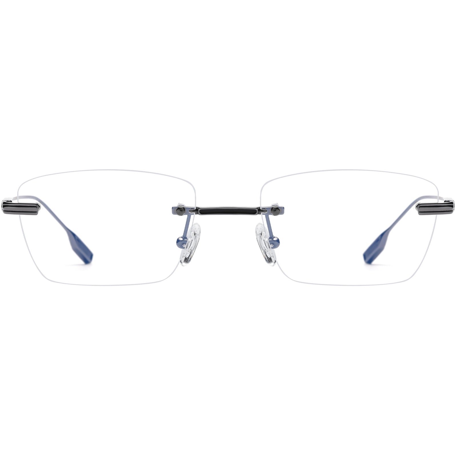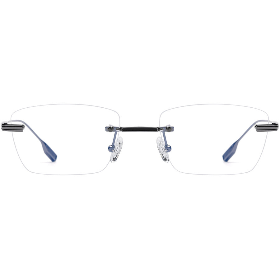 These medium-sized rectangular glasses feature a sleek rimless design, crafted from lightweight titanium for a comfortable, durable fit. The delicately engraved temple arms add a touch of sophistication, while the adjustable nose pads ensure a custom fit for optimal comfort. The unique temple tips are designed to reduce slippage, keeping your glasses securely in place throughout the day. Available in a range of colors including gray, silver, gold, black, and blue, these frames offer a perfect blend of style, comfort, and functionality.
