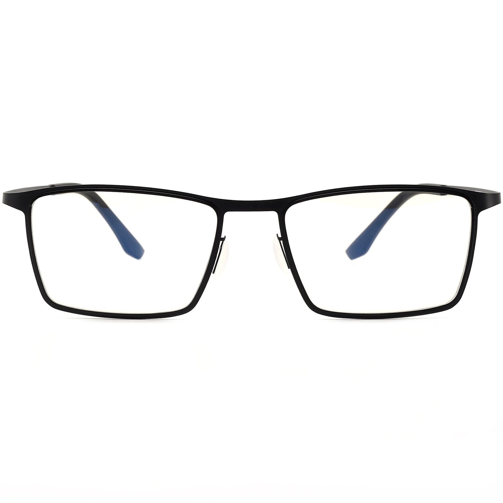 Featherweight rectangular eyeglasses crafted from titanium for a clean, modern look. The ultra-thin one-piece front and flexible temples reduce pressure, while adjustable silicone nose pads and soft temple tips keep the fit secure all day. Minimalist, unisex design that flatters oval, round and heart faces. Ready for prescription, progressive or blue-light lenses. Durable, corrosion-resistant finish. Available in matte black, gunmetal, silver, coffee and navy—an everyday office-to-weekend essential.