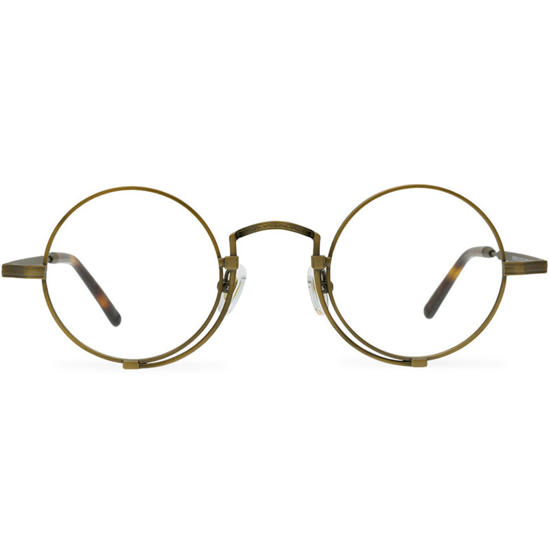 Embrace vintage style with our round glasses, perfect for both eyeglasses and sunglasses. Crafted from lightweight titanium, they feature a subtle stamped metal details at the bridge and temples. Acetate temple tips and adjustable nose pads ensure comfort. Available in bronze, black, black gold, and gray, these glasses combine elegance and versatility.