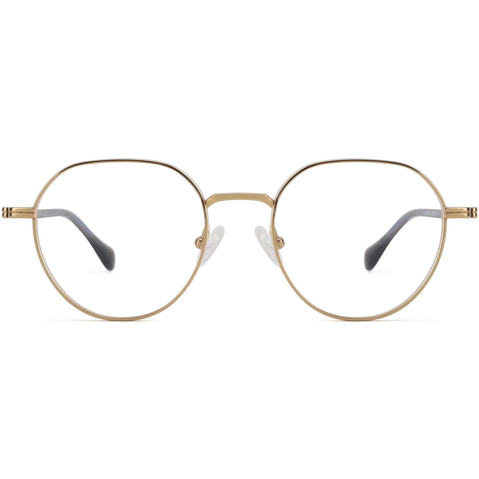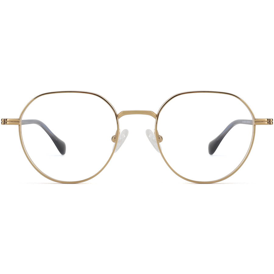 This pair of glasses is a perfect blend of classic style and modern details. Crafted from lightweight titanium, the frame features a soft geometric design that combines round and angular elements for a sophisticated yet versatile look. The sleek metallic finish adds an element of luxury, while the acetate temple tips offer a subtle contrast and ensure comfortable wear. Adjustable nose pads provide a customized fit, making these glasses ideal for all-day comfort. Elegant and functional, they suit both formal and casual occasions.