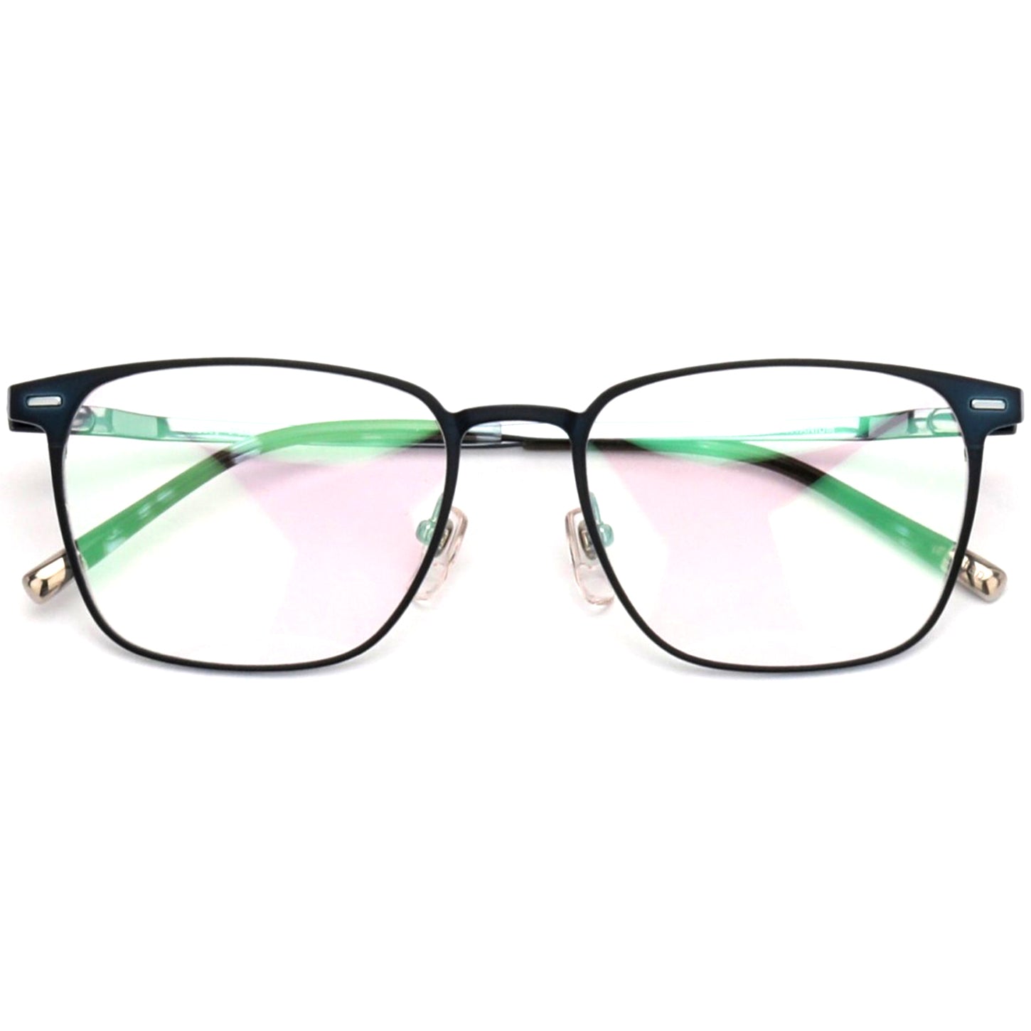 Introducing our exquisite square eyeglasses, perfect for formal occasions and beyond. These lightweight, full-rim glasses feature two stylish accents on either side of the front frame, adding a touch of sophistication to your look. Crafted with flexible β titanium, they ensure durability and a comfortable fit. The adjustable nose pads guarantee a customized experience for extended wear. The acetate temple tips with metal accents and shiny screw-like ornaments add a hint of elegance and flair. Embrace the perfect fusion of fashion and function with these eyeglasses, the ideal accessory for making a statement at any formal event.