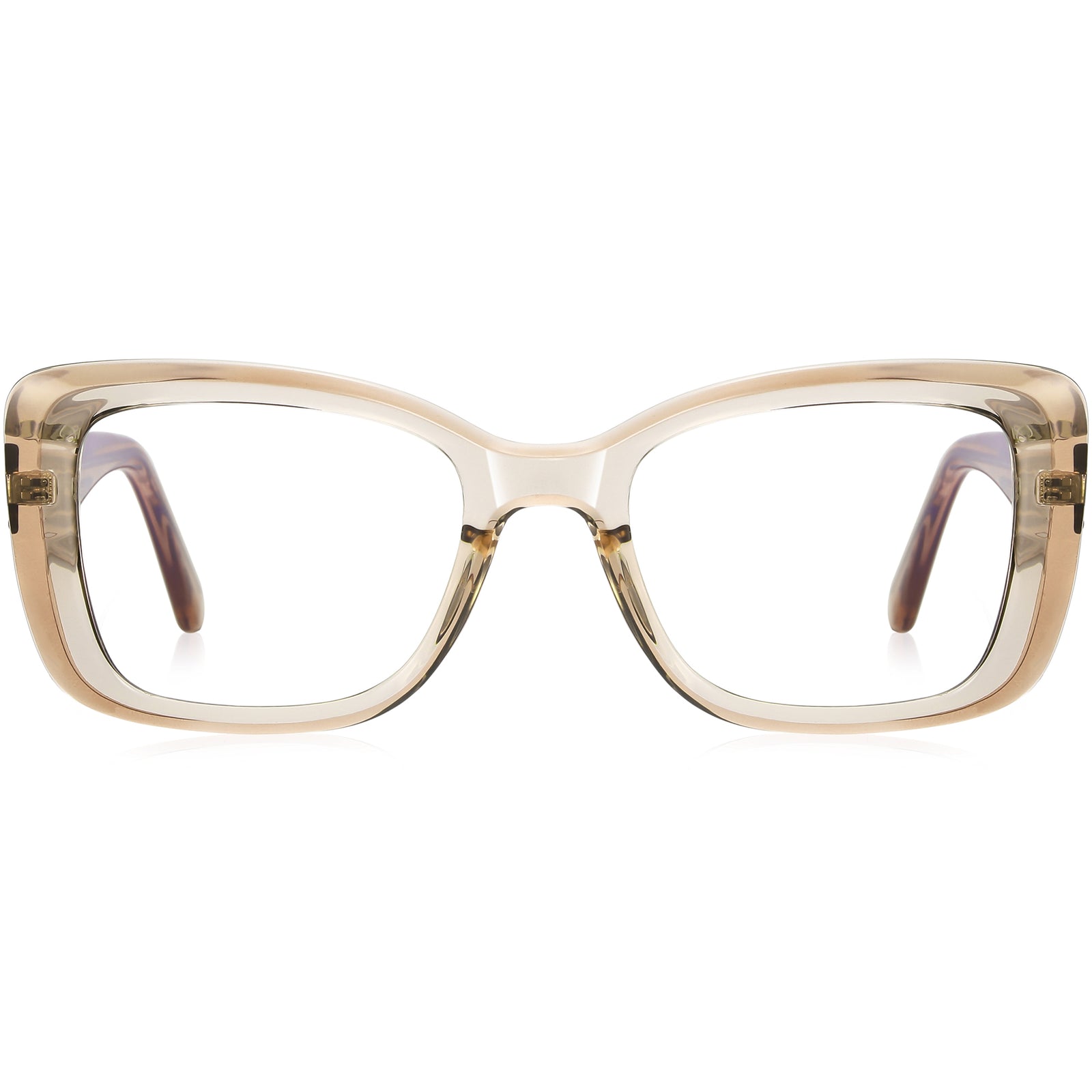 Experience color and comfort with these stylish cat-eye glasses. Crafted from the highest quality TR90, the glossy frame is both durable and lightweight. Featuring chunky temple arms and fun color options, these glasses also come with spring hinges for added comfort.
