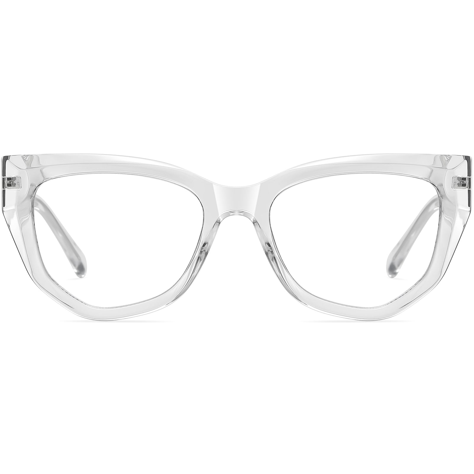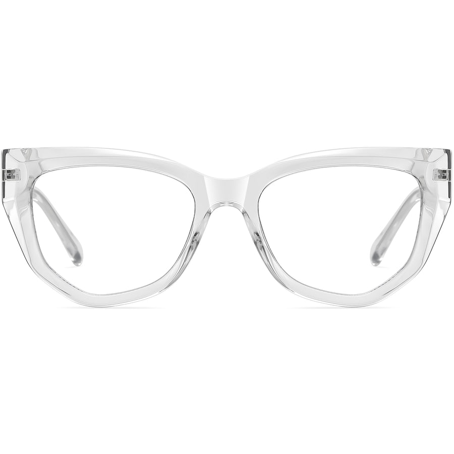 Take a look at these sophisticated cat-eye glasses. This angular frame is crafted from lightweight, glossy TR90 plastic, ensuring flexibility and durability. Featuring advanced edging technology and a diamond-cutting design, it boasts chunky temple arms for both style and comfort, complemented by spring hinges. Try them with tinted lenses to create chic sunglasses.
