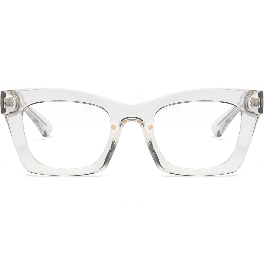 Bold yet brilliantly versatile, this chunky TR90 square-cat style makes an instant statement. Hand-polished translucent rims catch the light, while color options—from crystal clear and jet black to rose-blush dip, marble tortoise, smoke grey, and honey champagne—let you match any vibe. Sculpted nose pads relieve pressure, and wide temples balance the frame for wobble-free comfort. Sturdy five-barrel hinges promise seasons of dependable wear, so you can own every room with unmistakable confidence.