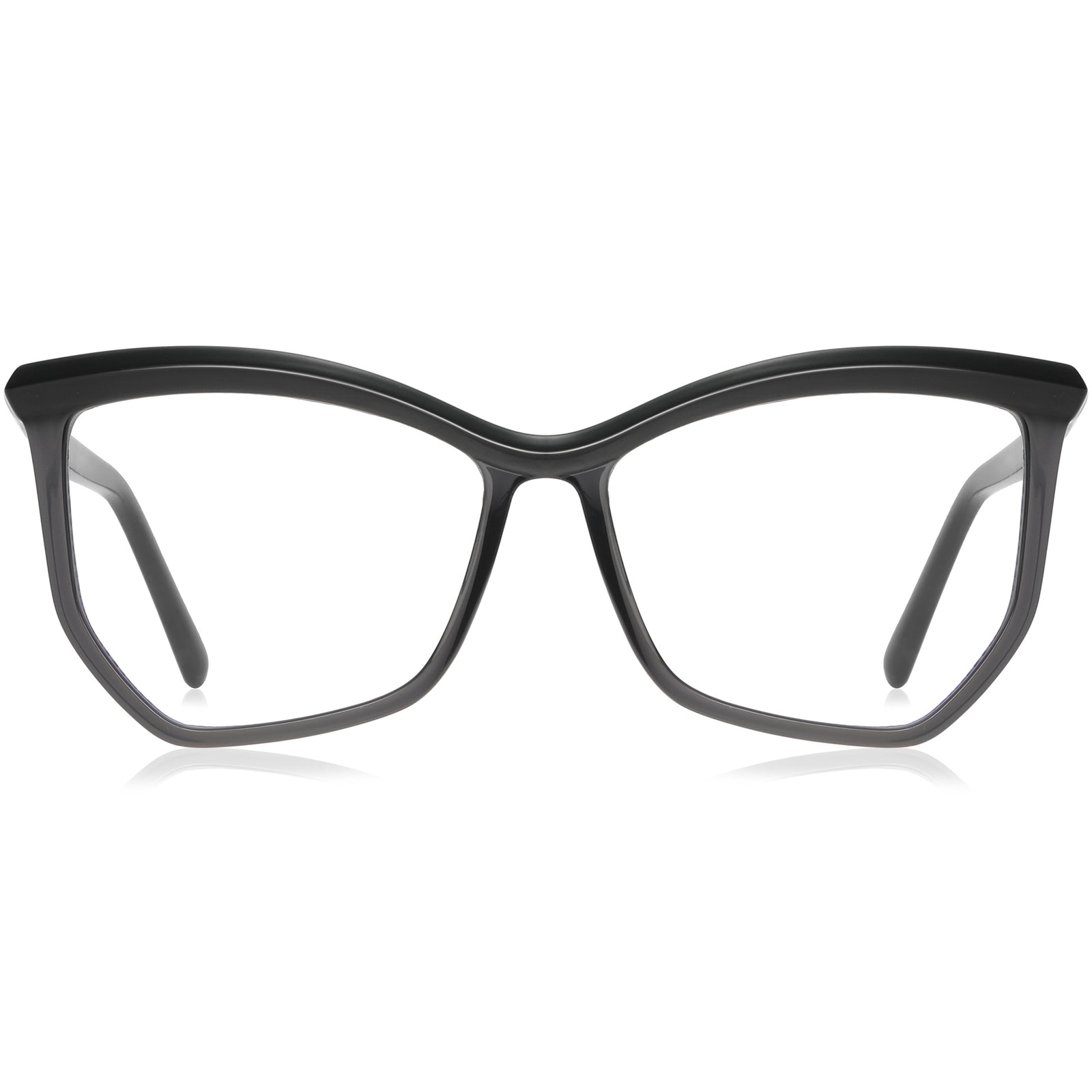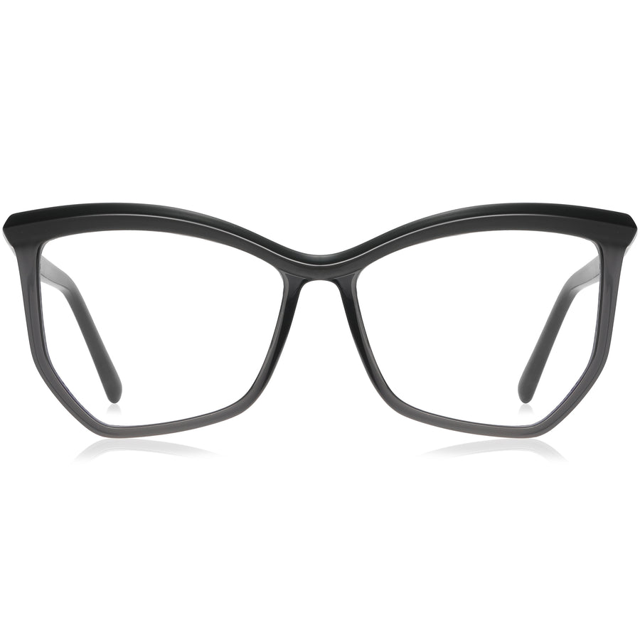 Add a splash of color to your look with these fashionable geometric glasses. The frame is a unique blend of cat-eye and polygonal shapes with minimal details, featuring colorful accents that extend out to cover the brow and temple arms. For added comfort, the lightweight style is fitted with spring hinges. Perfect as bold sunglasses as well.