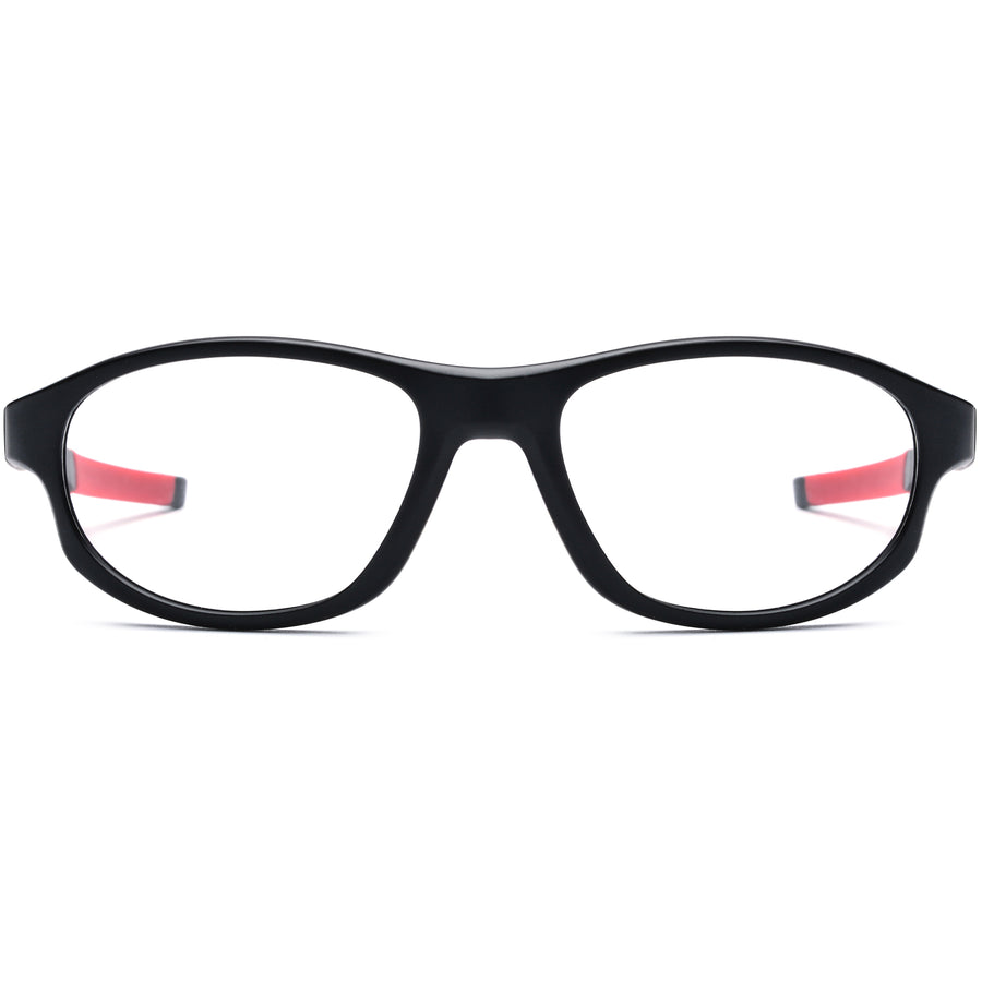These sleek performance sports glasses feature a full-rim oval frame crafted from lightweight and flexible TR90 plastic. Designed for both comfort and durability, the frame ensures a secure fit for a variety of face shapes. Ideal for athletic activities and outdoor adventures, these glasses offer a modern, streamlined look while providing the flexibility and strength needed for high-performance use. Perfect for those who need eyewear that keeps up with an active lifestyle.