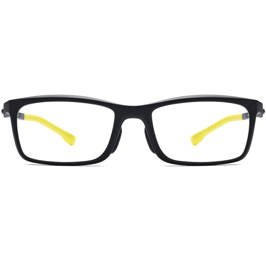 These full-rim rectangular sports glasses are made from lightweight TR90 plastic, offering a perfect balance of durability and comfort. The comfortable nose pads enhance all-day wearability, while the colorful temple tips add a touch of personality. These glasses stay securely in place during outdoor adventures. Ideal for round and heart-shaped faces, they combine classic sporty design with superior comfort for an active and stylish look.