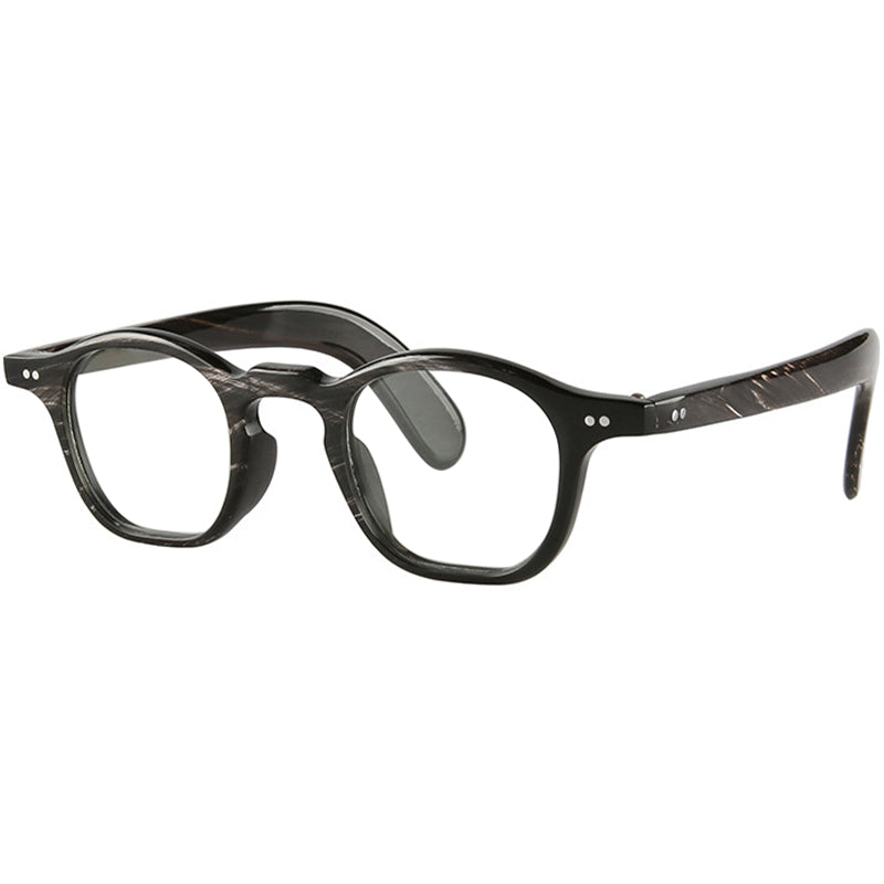 Each frame showcases designs that are crafted without following a fixed pattern, introducing a delightful touch of unpredictability. Every segment constructed from buffalo horn is unparalleled in its beauty, flaunting a color spectrum that flows from luminous whites and subtle grays to rich browns and deep blacks. These distinctive shades stem from the horn's unique mineral makeup. Furthermore, each buffalo endows its horn with an exclusive pattern, making every frame a celebration of nature's artistry. While precision is always our aim, kindly understand that we will endeavor to align with your selected color preference as closely as possible.