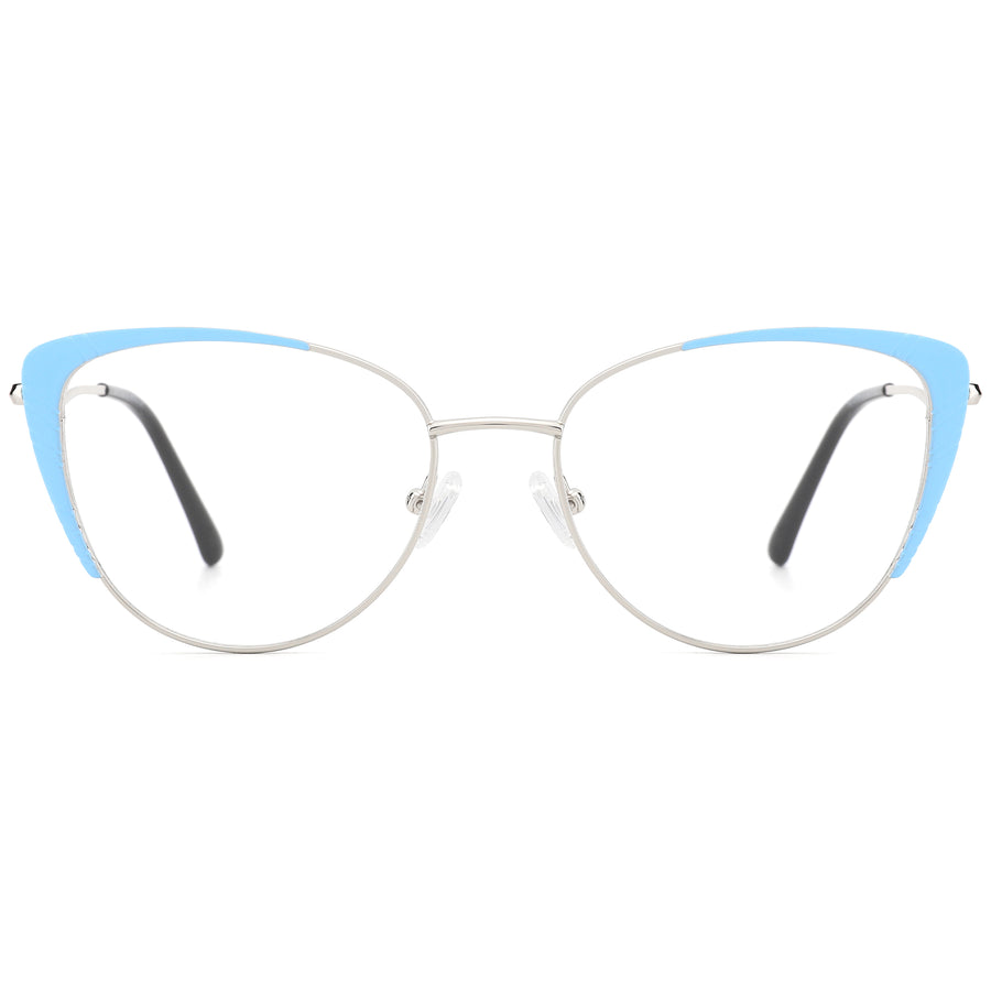 This attention-grabbing Cat-Eye frame exudes sophisticated allure with its full-rim lightweight design, ensuring all-day comfort and fit. Featuring bold color accents at the corners, it's tailored for women with oval or diamond face shapes. With spring hinges and adjustable nose pads, these frames are perfect for both everyday glasses and chic sunglasses.