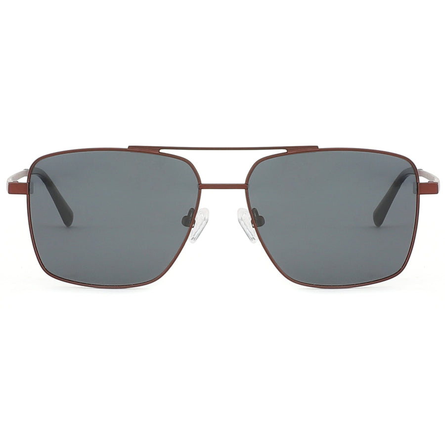 These bold, square aviator sunglasses feature a sleek lightweight metal frame with polarized lenses for full UV protection. The lightweight design ensures a comfortable fit with spring hinges and adjustable nose pads, while the double-bridge adds a modern touch. Perfect for a confident, stylish look on any occasion.