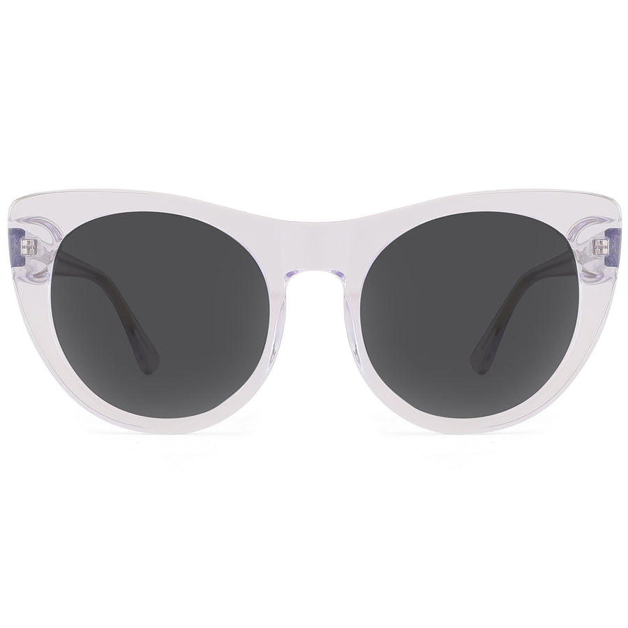 Bold lens shape meets transparency with these unique cat-eye sunglasses. Featuring transparent rims and temple arms, along with spring hinges for comfort, these sunglasses provide polarized lenses for full UV protection—ensuring your look is as practical as it is stylish.