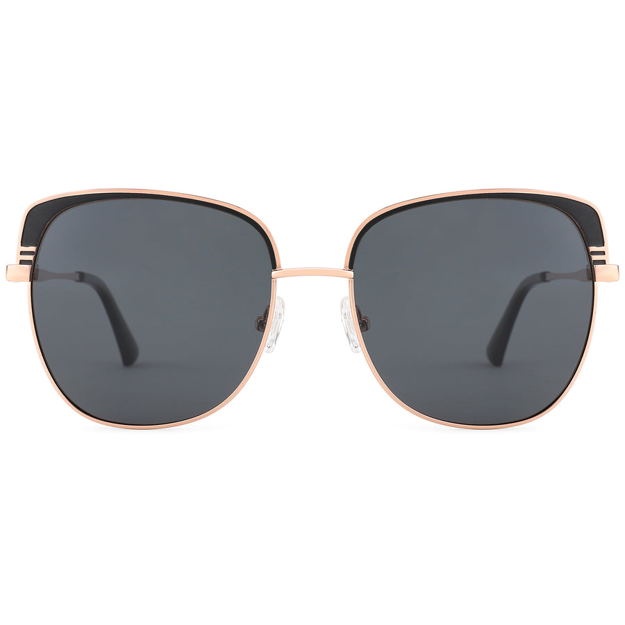 Elegant square sunglasses with lightweight metal frames, featuring spring hinges and adjustable nose pads for a personalized fit. The polarized lenses provide complete UVA/UVB/UV400 protection, ensuring style meets comfort for daily wear. This frame is perfect for heart and oval face shapes, enhancing your sophiscated style.