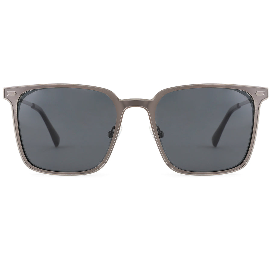 Modern square sunglasses with iconic metal corner accents, featuring spring hinges and adjustable nose pads for a comfortable, customized fit. The lightweight metal frame provides durability, while polarized lenses offer full UVA/UVB/UV400 protection. This frame is perfect for heart and oval face shapes, completing your distinguished style.
