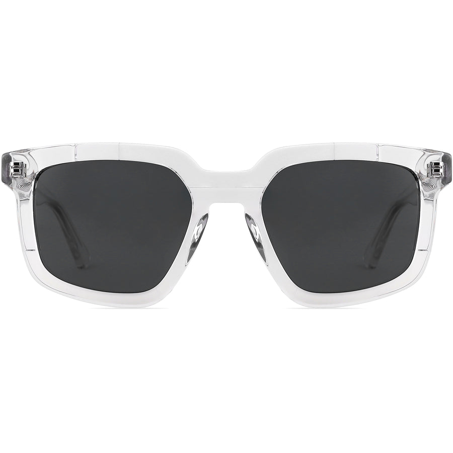 These sunglasses feature a geometric square frame crafted from high-quality acetate, designed to make a bold color combination. The dual-tone color scheme combines shades of deep brown and a vibrant purple, adding a unique pop of color and style. The temples are thick and substantial, providing a sturdy and stylish look. They are adorned with decorative metal accents. The contrasting acetate colors on the front rim and temples make the sunglasses stand out, giving them a dynamic and creative appeal. The dark-tinted lenses offer 100% UV protection, ensuring your eyes are well-protected while providing a chic look. The frame's acetate material is not only durable but also lightweight, making these sunglasses comfortable for extended wear and a secure fit.