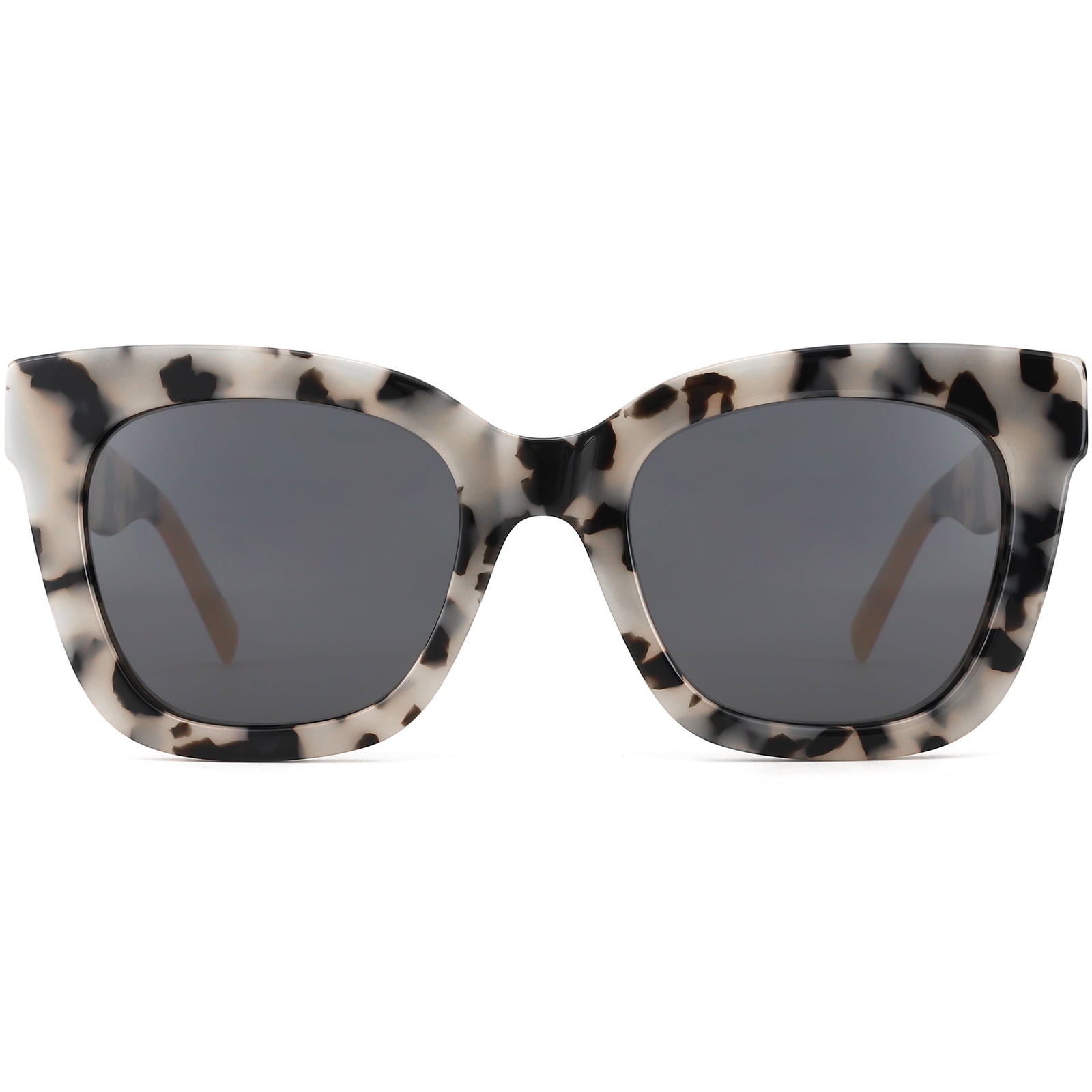 These square sunglasses feature a bold design crafted from glossy acetate, with thick rims and chunky temple arms that offer a striking look. Available in tortoiseshell and marbled patterns, the polarized lenses provide 100% UV protection, blocking harmful UVA and UVB rays while reducing glare for enhanced clarity. Designed for both men and women, these sunglasses deliver all-day comfort and a secure fit, making them perfect for everyday wear. Ideal for oval and heart face shapes, they combine style with practicality.