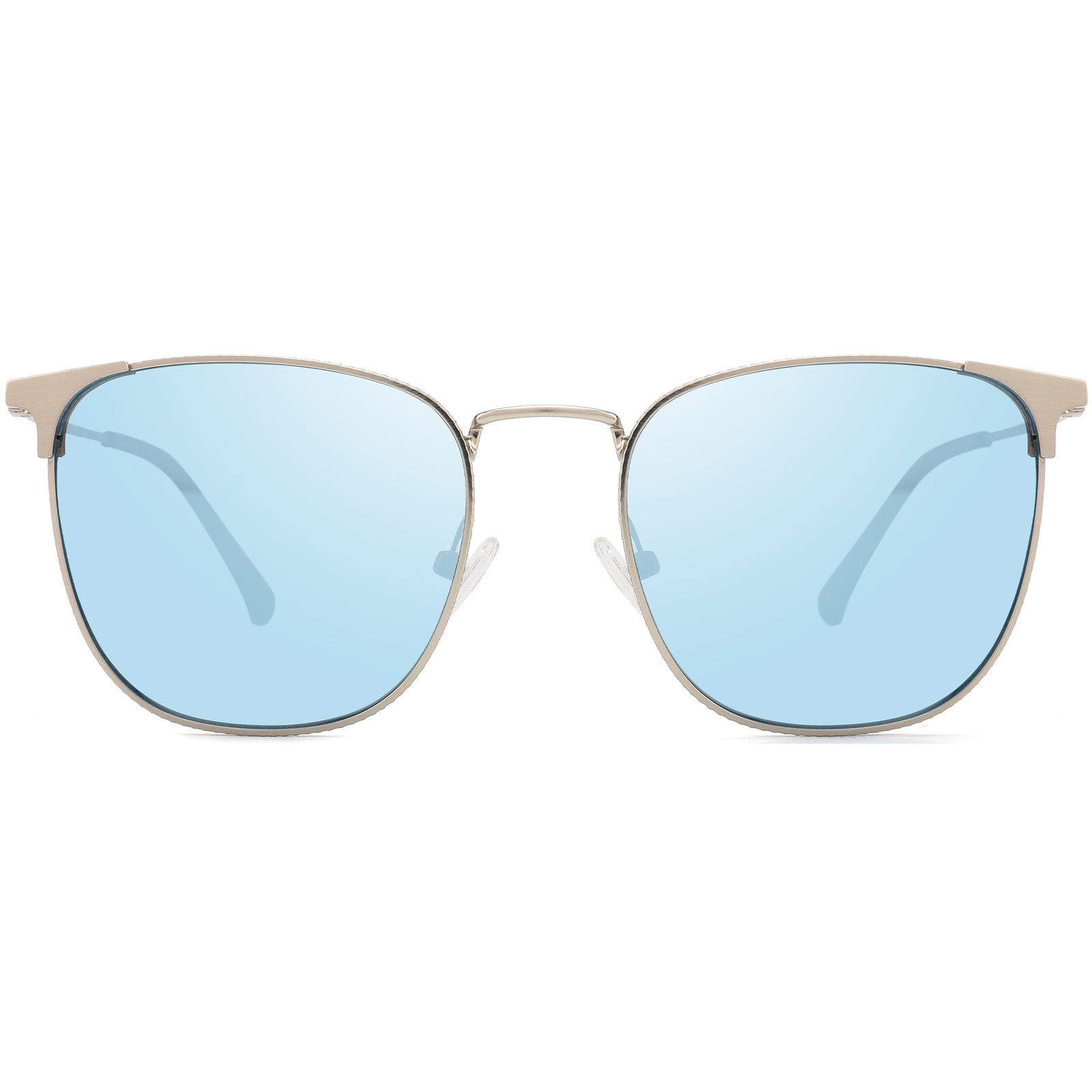 These sunglasses feature a delicate, polished metallic-toned keyhole bridge, adding a luxurious touch of sophistication to the overall design. The slim bridge contrasts beautifully with the bold front rim, creating a refined focal point that balances elegance and versatility. The dual-tone combination of the frame and bridge offers a chic and stylish look. The adjustable nose pads are designed for comfort, allowing the sunglasses to rest gently on the nose without pressure. The sturdy yet lightweight construction enhances both structural integrity and the overall aesthetic, making these sunglasses a perfect blend of style and comfort.