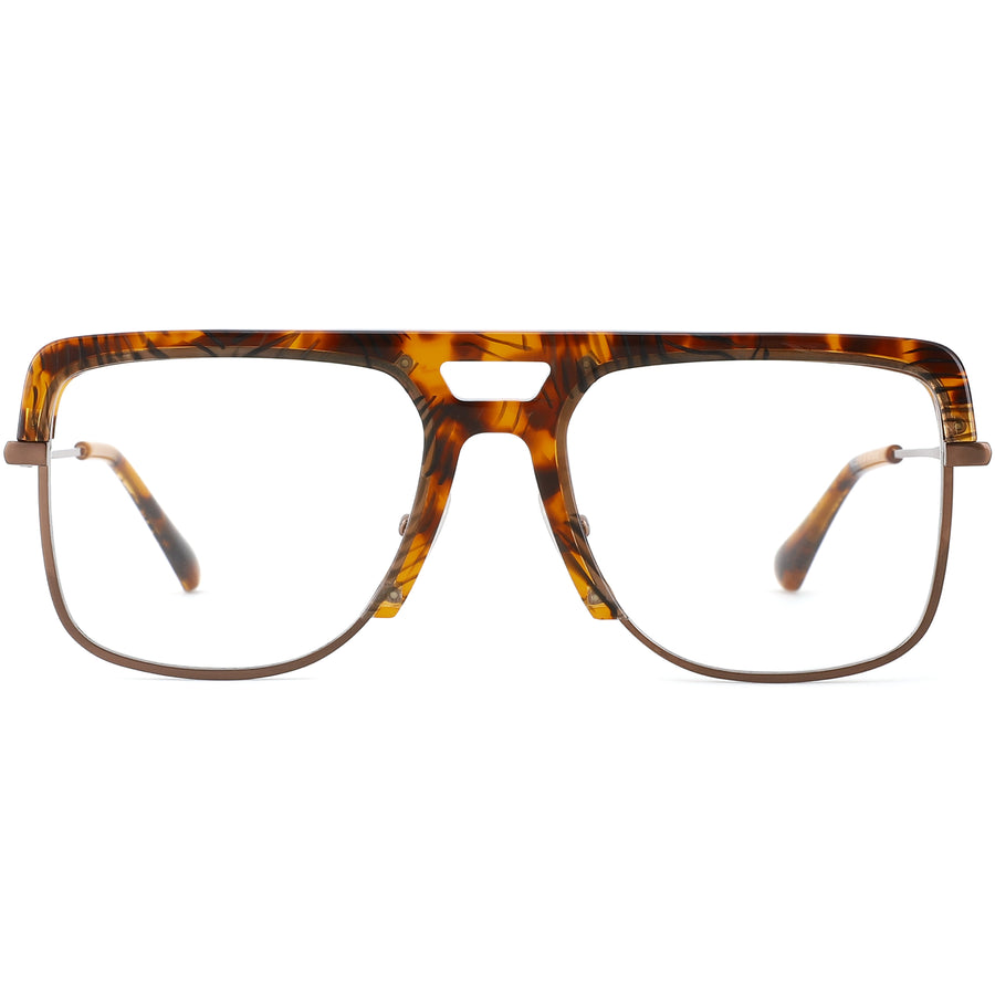 Designed for a modern look, these aviator glasses pair a square metal front frame with a acetate brow bar for a refined aesthetic. The slender metal temple arms feature clean, minimalist lines, adding to the lightweight yet durable construction. Adjustable nose pads and flexible spring hinges ensure maximum comfort and a customized fit, making them ideal for extended wear. Choose from classic colors like tortoiseshell, black, gray, and blueto match your personal style with effortless sophistication.