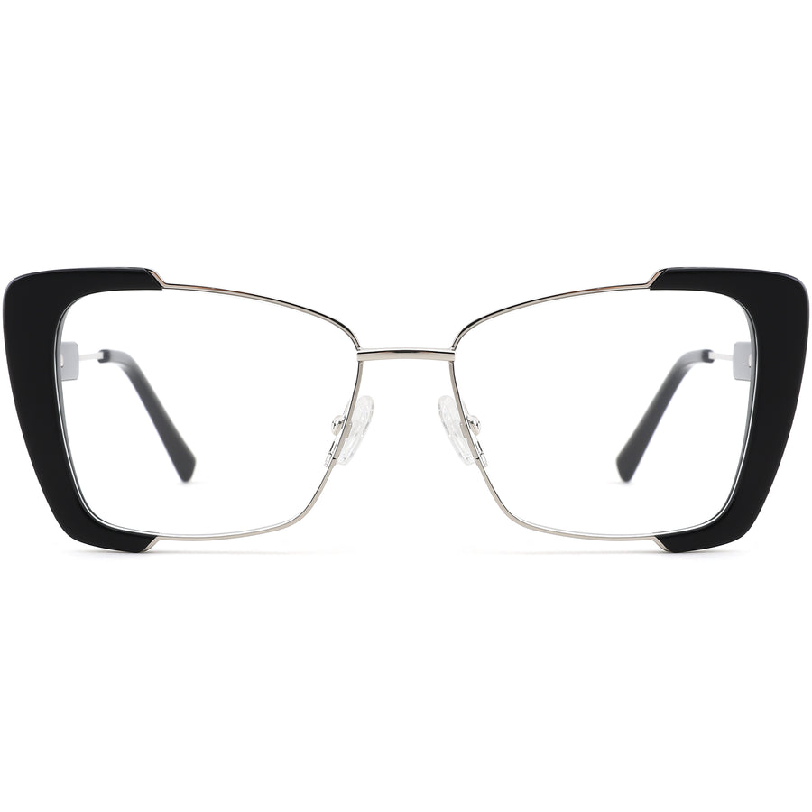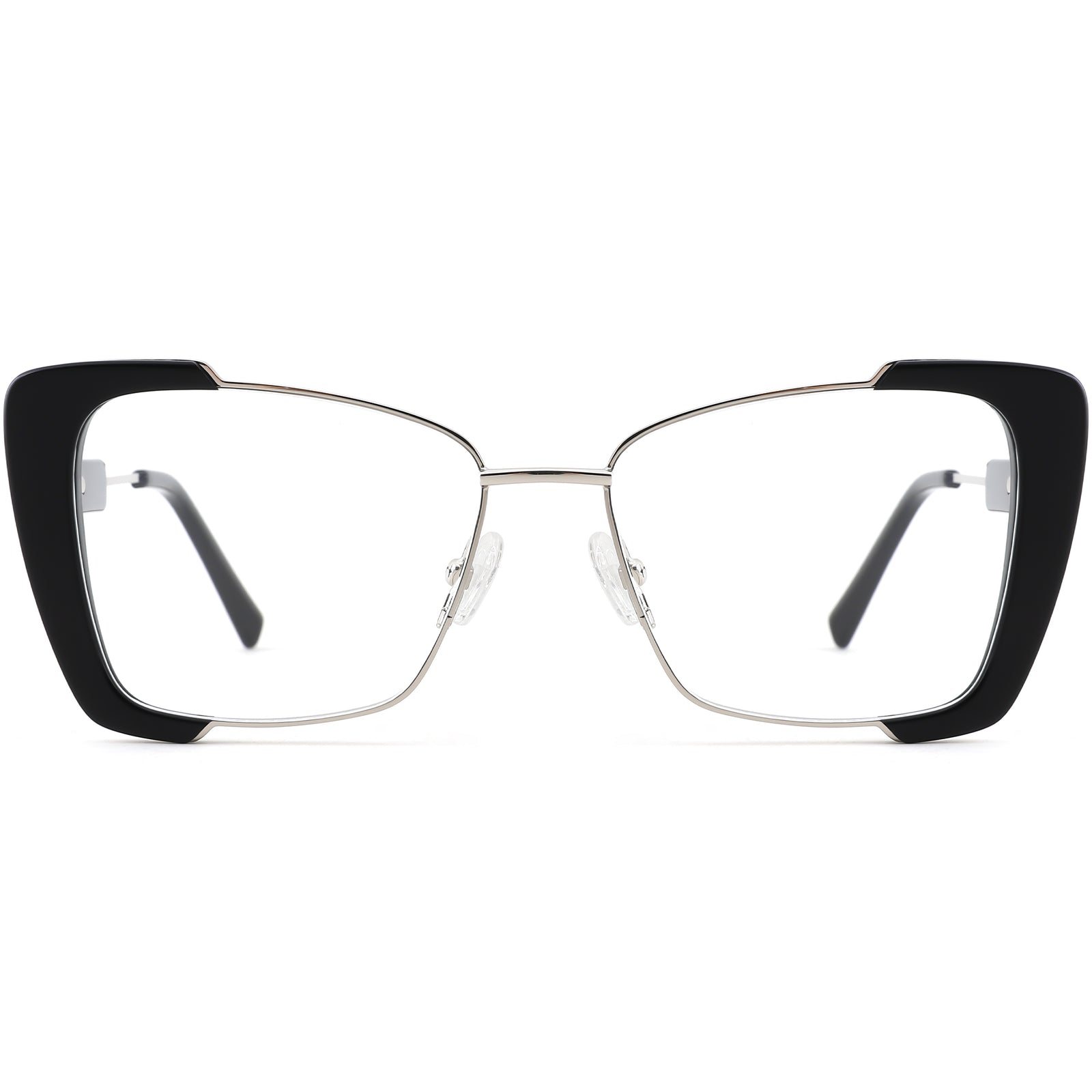 These square glasses feature bold acetate front rims enhanced with a unique layered design that creates an eye-catching outline around the lenses. The thin metal temple arms add a modern twist while maintaining a lightweight feel, and the adjustable nose pads and spring hinges ensure comfort for all-day wear. Perfect for oval and diamond face shapes, these glasses add a contemporary flair to any look, available in various striking color options