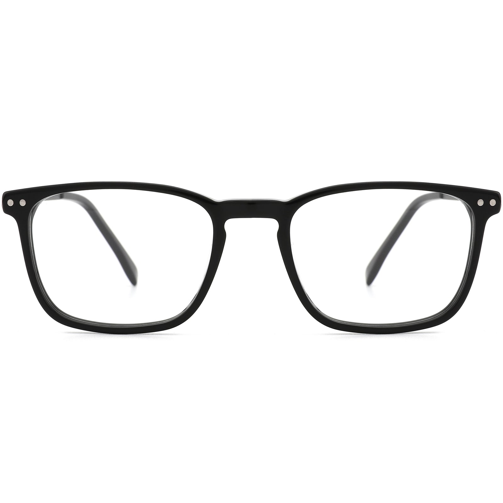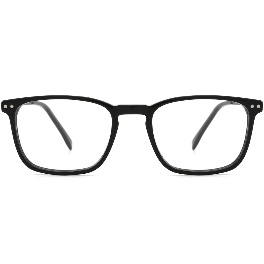 These unisex rectangular eyeglasses feature a sleek black acetate frame paired with slender metal temple arms, combining simplicity with sophistication. The intricate double-dot details at the corners add a subtle touch of elegance, while the clean lines create a timeless, minimalist look. Lightweight and comfortable, these frames are designed for all-day wear, making them a perfect choice for anyone seeking understated style and everyday practicality.